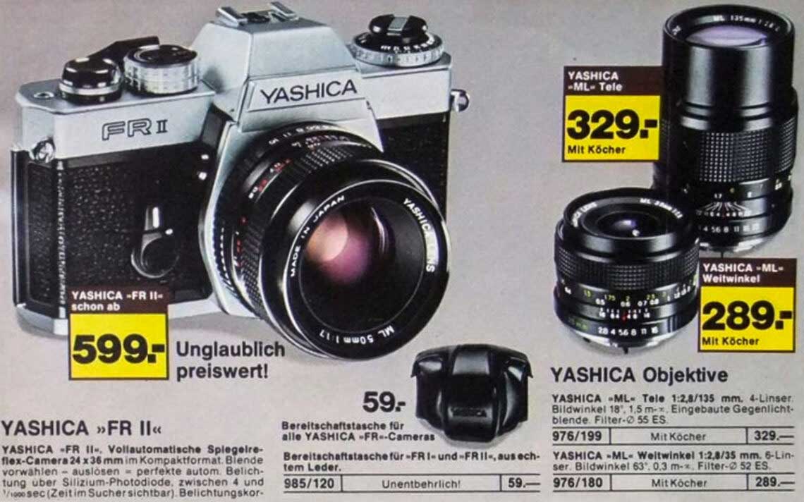 Im M42-Markt spielte Yashica eher eine Nebenrolle. Ab 1975 setzte Yashica im Rahmen einer Kooperation mit Zeiss auf das C/Y-Bajonett, kompatibel zu eigenen FX- und FR-Kameras und der Contax-RTS. Von beiden Herstellern finden sich heute interessante Objektive auf dem Gebrauchtmarkt.