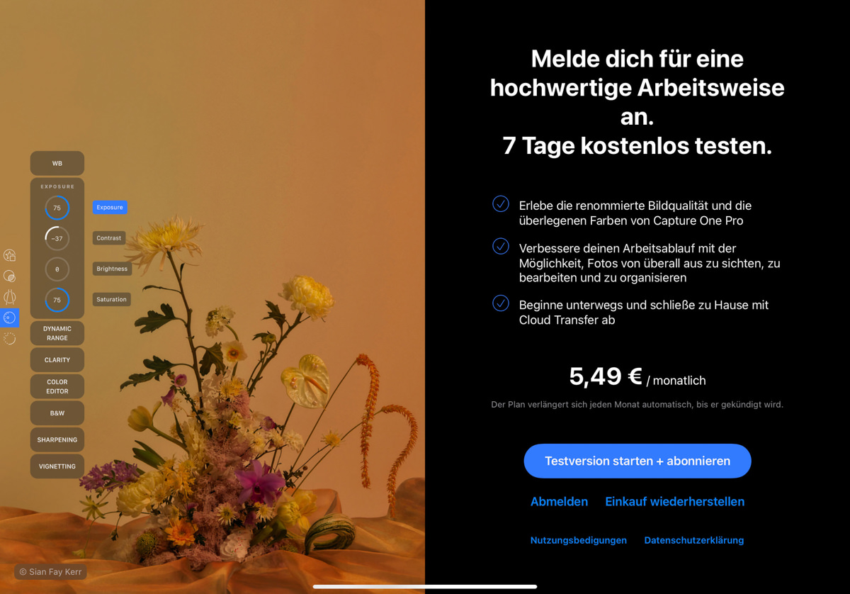 Enttäuschend ist wohl vor allem, dass hier von Capture One kein Unterschied zwischen Abonnenten der Vollversion und ausschließlichen Abonnenten der iPad-Version macht (falls Letzteres überhaupt vorgesehen ist). Und dass man neben dem Desktop-Abo sowie dem Capture One Live-Abo (für die Remote Zusammenarbeit) jetzt auch noch ein drittes Abo für das iPad abschließen soll.