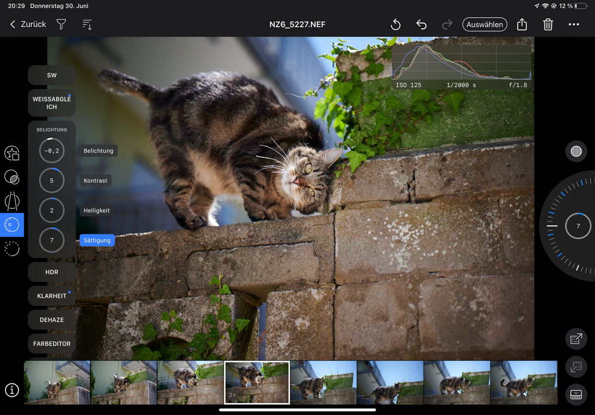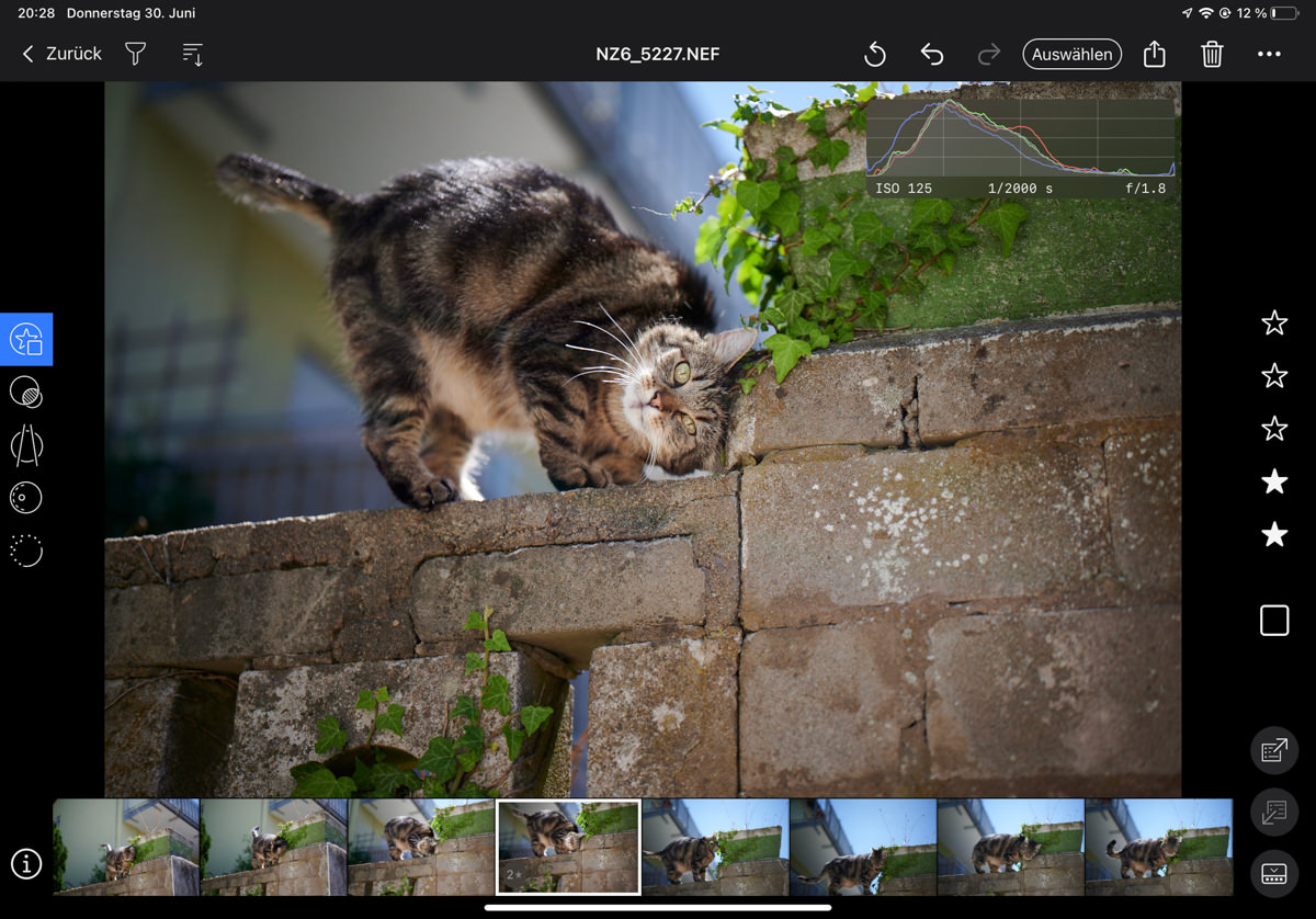 Das ist jedenfalls nach drei Tagen intensiven Testens meine Meinung. Dazu muss ich anmerken, dass ich ein eher ungeduldiger Mensch bin, der lieber alle Informationen auf einen Blick sieht und lieber eine Tastenkombination drückt, als sich durch drei Untermenüs zu hangeln. Vielleicht empfinden Sie die Bedienung von Capture One für iPad ja ganz anders. Das erfahren Sie nur durch eigenes Ausprobieren.