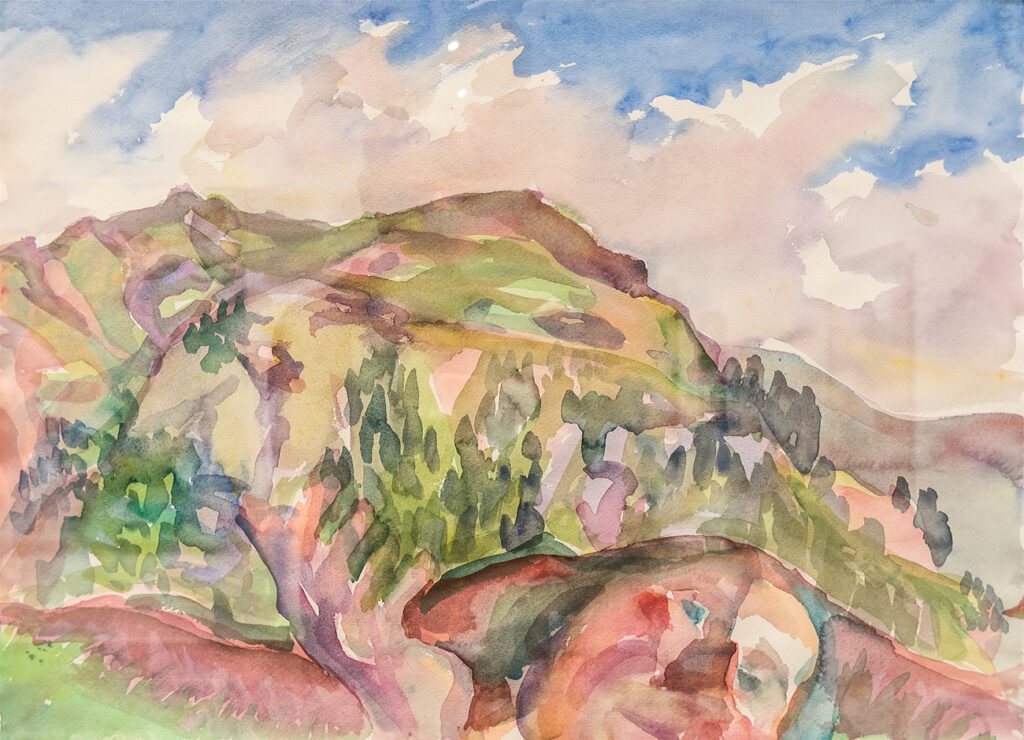 Auch in der Darstellung der Natur gibt es Unterschiede. Munch neigt dazu, die Landschaft zu psychologisieren; sie spiegelt die Gefühle und Stimmungen der Personen wider. Auch bei Lassnig existiert eine Verbindung zwischen Mensch und Natur, nur ist sie eher körperlicher als seelischer Art – der Mensch ist (oder wird) ein Teil der Natur. So fasst sie in ihrem Gemälde Wenn i amol unter der Erden bin (1985) das metaphorische unter der Erde sein ganz wörtlich auf: Ihr Körper verschmilzt mit der Landschaft.