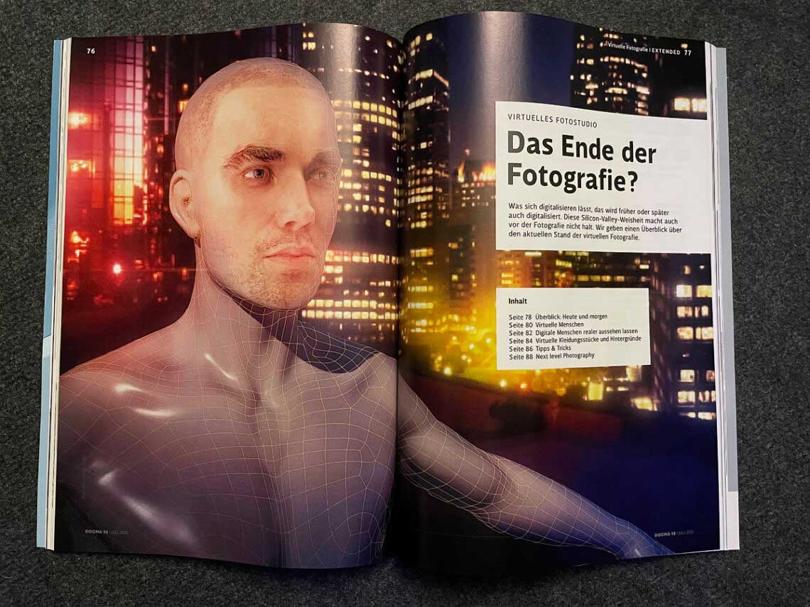 Naja, genau diesen Punkt sehe ich anders. Denn NICHTS von allen Bildbearbeitungs- und 3D-Möglichkeiten ersetzt die dokumentarische Fotografie! Mit jedem neuen Bildbearbeitungs- und 3D-Werkzeug bekommt ein Künstler neue kreative Möglichkeiten; und dem Werbe-Dienstleister sparen diese viel Zeit. Wer sein Geld nicht mit Bildbearbeitung verdient, kann es vielleicht nicht nachvollziehen, aber Zeit ist wirklich Geld und man kann sich seine Jobs und deren Zielstellung sowie das finanzielle und zeitliche Budget nicht mal eben aussuchen. Wird ein Himmelstausch gefordert, spart man mit den neuen Tools viele Klicks und Zeit. In der Werbung geht es in der Regel nur darum, das beste Ergebnis mit einem Minimum an Zeit und Geld zu erreichen. Und da wird zunehmend 3D wichtig und immer leistungsfähiger, wie wir im aktuellen Heft zeigen: