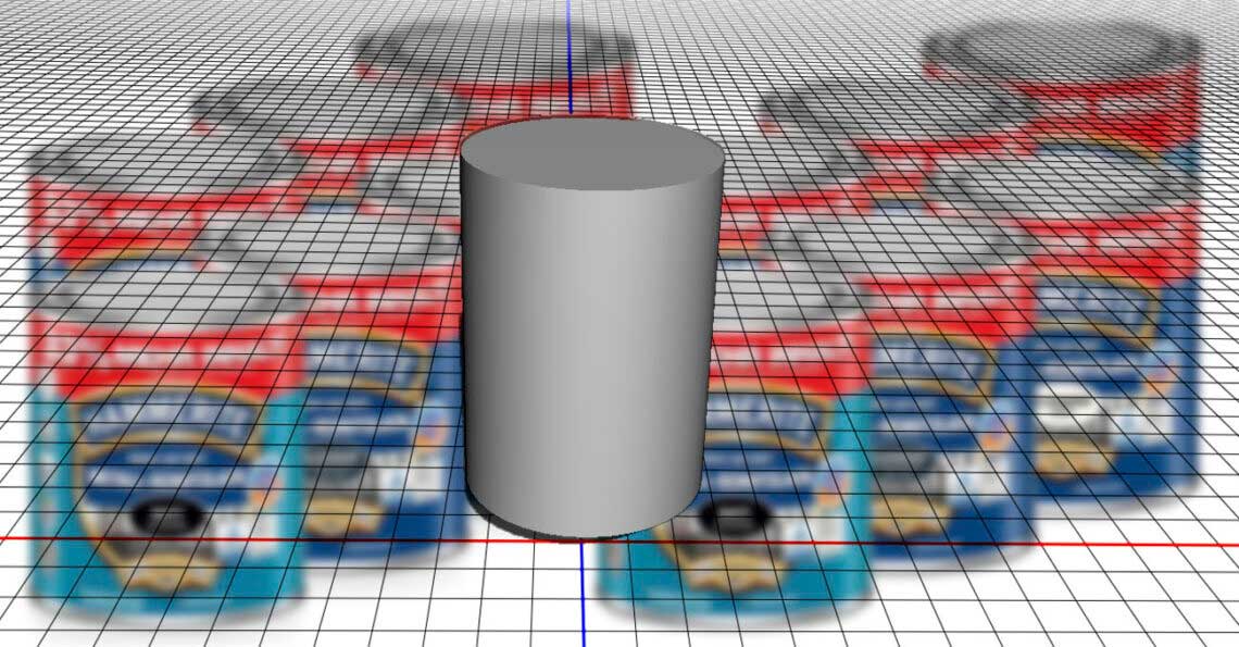 Die Perspektive hängt ja vom Betrachtungsstandpunkt und insbesondere von der Entfernung ab, und aus einem hinreichend großen Abstand sehen Dosen tatsächlich so aus. Nur könnten wir aus einer solchen Entfernung nicht viel erkennen, ohne zu einem Fernglas zu greifen. Das ist keine alltägliche Situation; vielmehr schauen wir uns Lackdosen gewöhnlich genauer an, wenn wir direkt davor stehen (oder wir treten näher heran, wenn wir sie näher in Augenschein nehmen wollen). Einem Foto oder dem Rendering eines 3D-Modells sehen wir den Aufnahmestandpunkt und die verwendete Brennweite aber nicht ohne weiteres an; wir bemerken also nicht, wie ungewöhnlich die Perspektive ist, und das ist die Ursache der Irritation – wir setzen einen anderen als den tatsächlichen Betrachtungsstandpunkt voraus und interpretieren die Ansicht daher falsch.