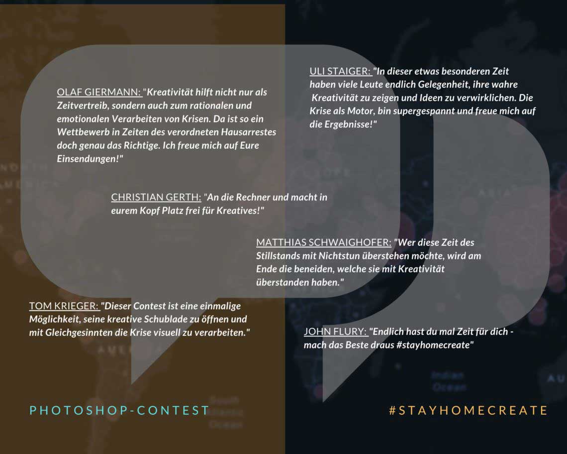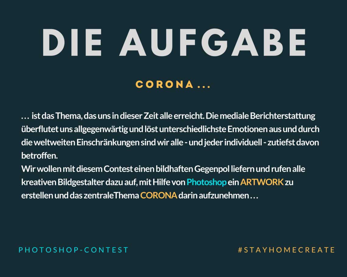 Der von Tom Krieger initiierte Bildwettbewerb #stayhomecreate mit dem Thema „Corona“ (ich berichtete) ist für die Teilnehmer abgeschlossen. Im Video unter diesem Link stellt Tom Krieger die Gewinner und ihre Werke vor. (Leider nur nach Anmeldung auf Facebook – und dann wohl auch nur in der geschlossenen Gruppe verfügbar).