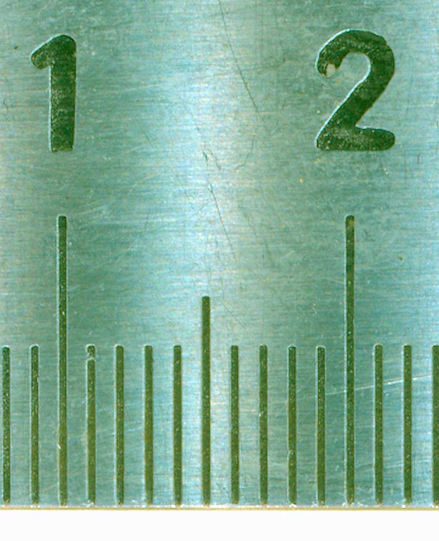 Auch mit dem Scanner lassen sich erhebliche Vergrößerungen erzielen; beim Druck mit 300 ppi entspräche der Abstand von einem Zentimeter 32 Zentimetern.