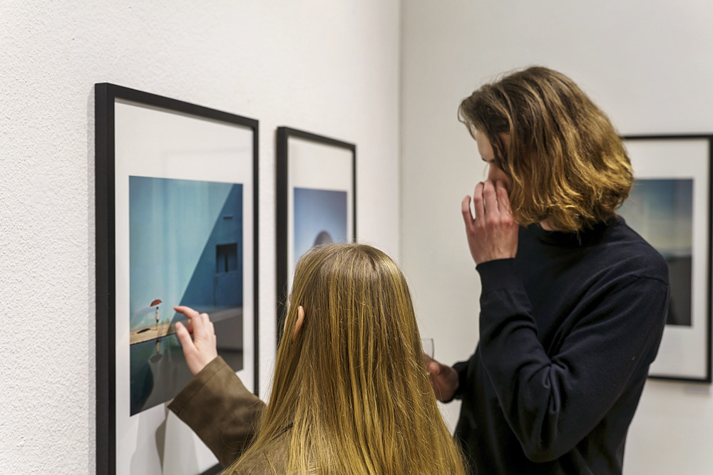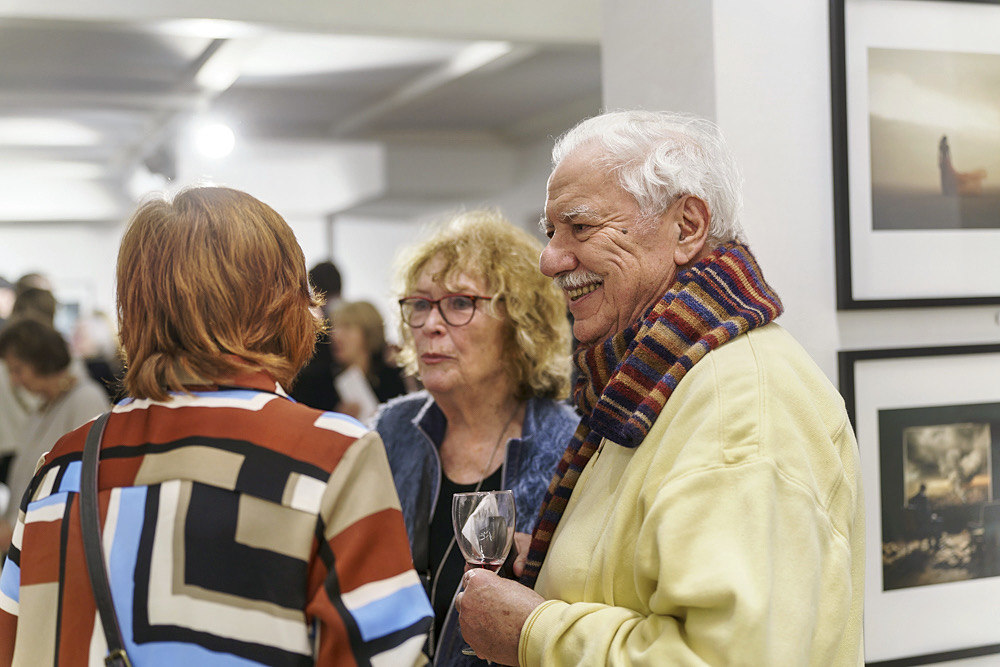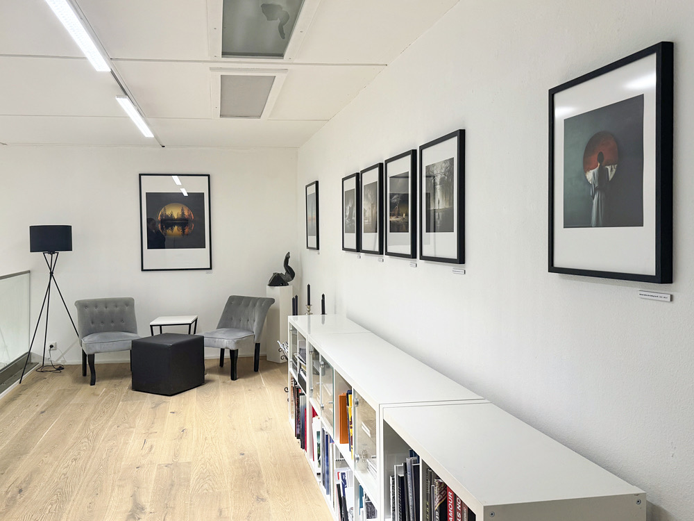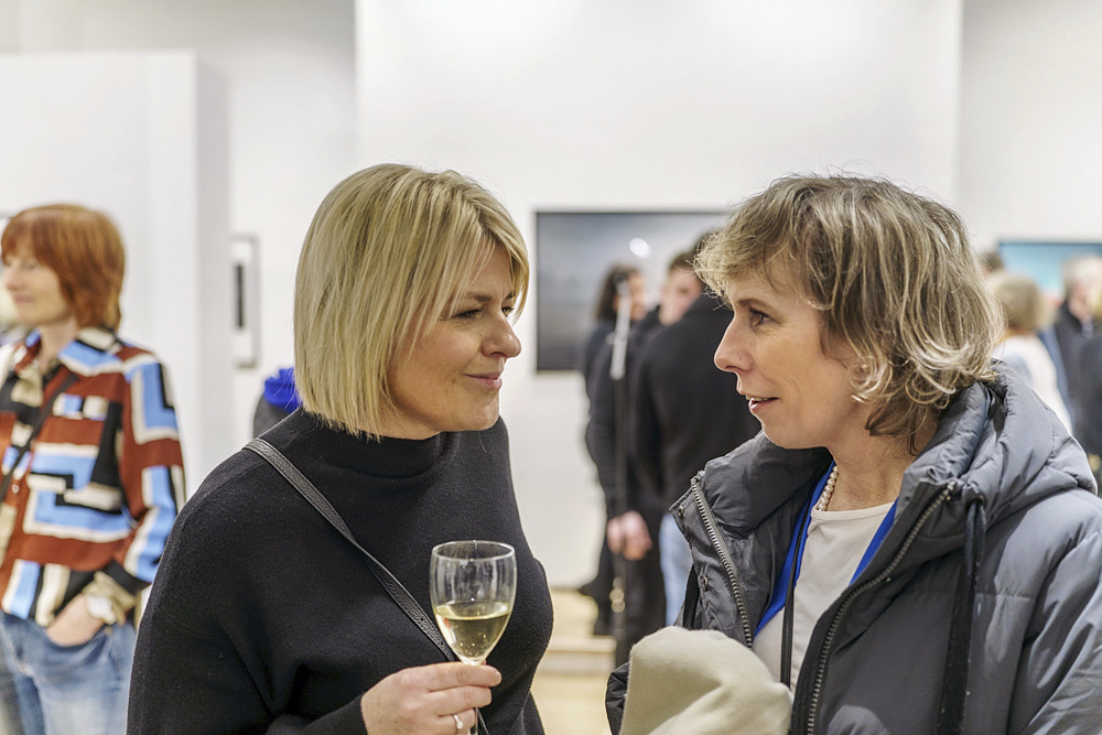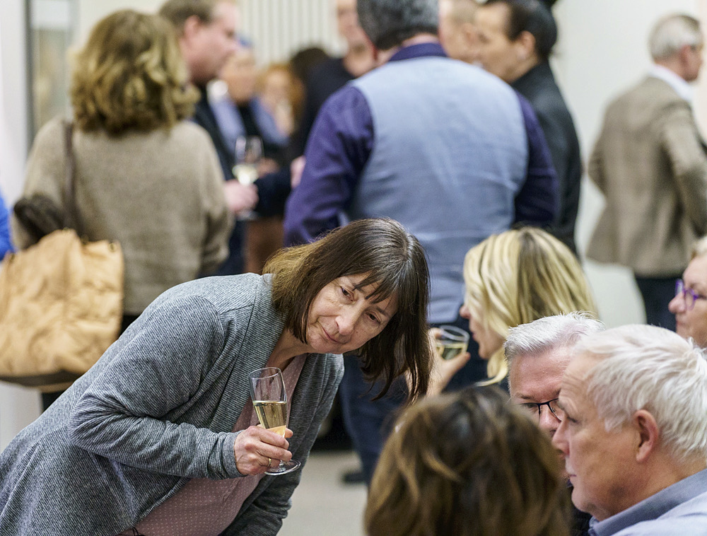 Anschließend verlagerte sich das Geschehen in die Galerie STP, wo bei Wein und Häppchen die Auseinandersetzung mit dem Thema weiter vertieft wurde. Der Galerist Peter Konschake gab gemeinsam mit dem Medienkünstler Christoph Künne eine kurze Einführung in die ausgestellten Werke. Vertiefende Einzelgespräche mit den Gästen boten Gelegenheit, weiter in die Welt der KI-Kunst einzutauchen und die komplexen Prozesse hinter den Kunstwerken zu verstehen.