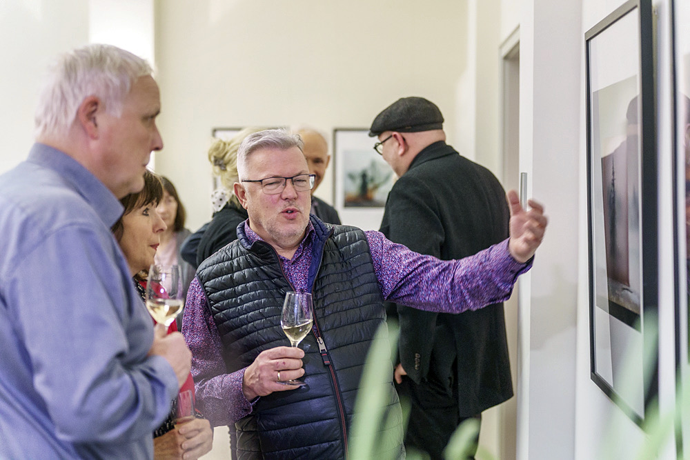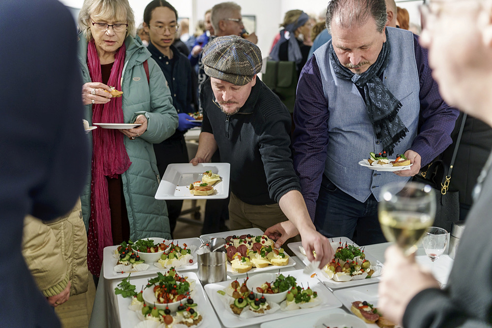 Zur Eröffnungsveranstaltung fanden sich am frühen Abend etwa einhundert Kunstinteressierte ein. Der erste Teil der Vernissage begann in der Caspar-David-Friedrich Sparkassenfiliale am Markt in Greifswald, einem historischen Ort mit besonderer Bedeutung, da das Gebäude einst dem Bruder des Malers gehörte. Diese authentische Umgebung bot einen perfekten Rahmen für den Beginn des Abends.