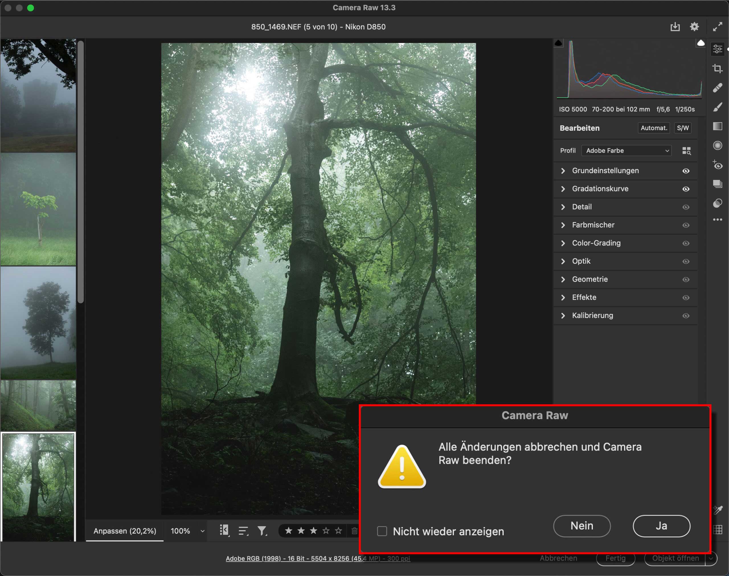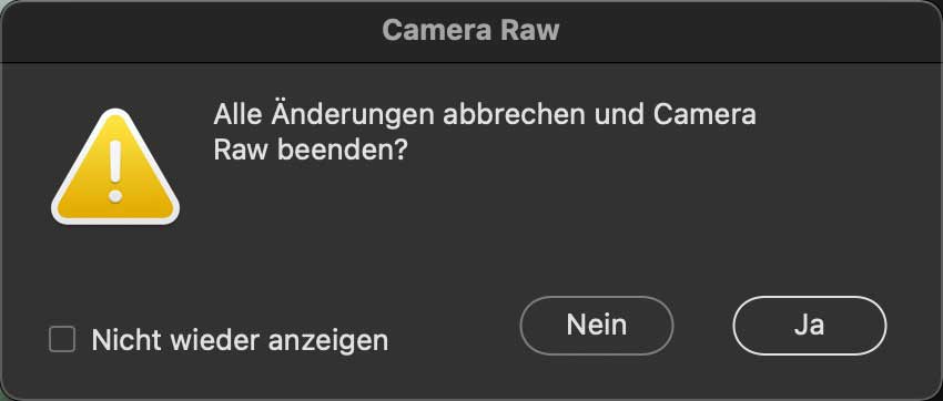 Camera Raw, die Escape-Taste und ein verschwundener Warndialog