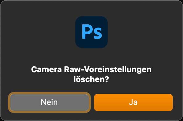 Nachtrag: Aber okay, sonst gibt es oft eine Funktion „Alle Dialoge wiederherstellen“ o.ä., da könnte man diese Frage, ob man das wirklich will, wiederherstellen, ohne alle anderen Voreinstellungen zu CameraRaw zu löschen. Das mag sinnvoll sein (wobei ich mich ehrlich gesagt immer gefragt habe, wofür diese Funktion gut sein soll, die alle nervigen Nachfragen wieder herzaubert, die ich mühsam weggeklickt habe – so unterschiedlich können Workflows sein) 😀 😉