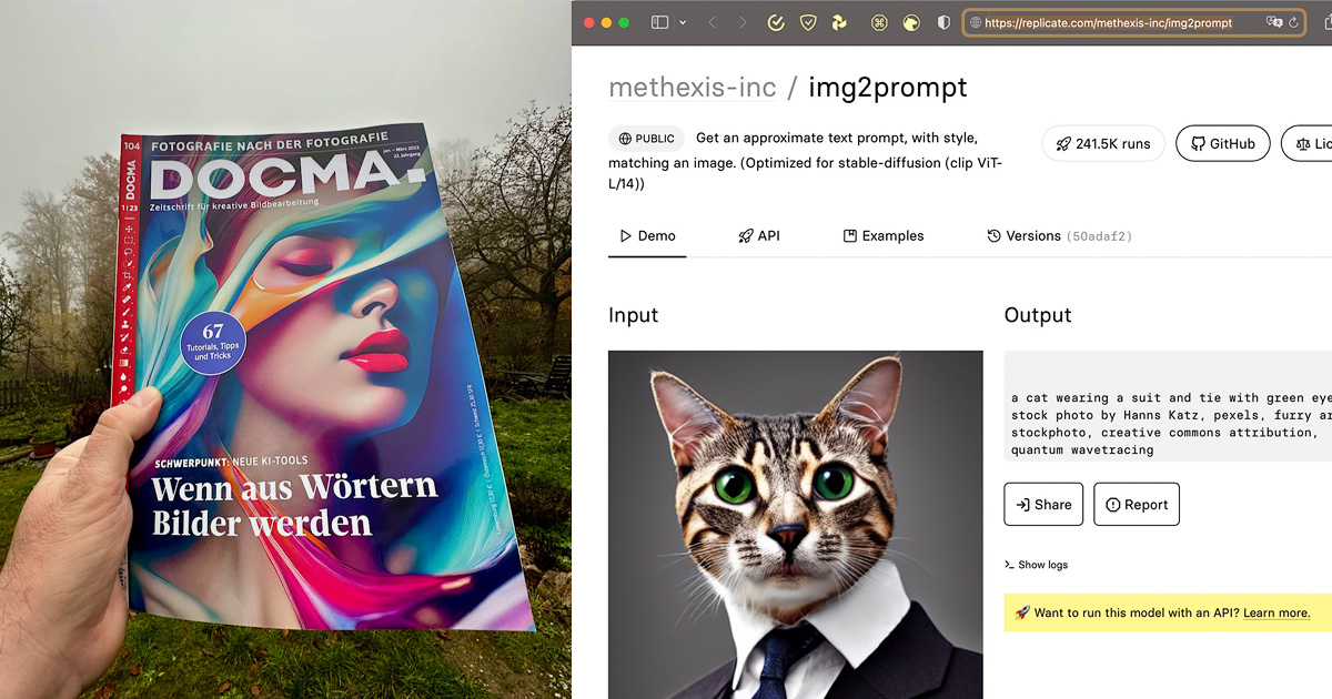 Das neue Heft DOCMA 104 ist da. Schwerpunkt neben selbstverständlich vielen Tipps & Tricks zu Lightroom, Photoshop, Capture One, Luminar Neo und Co. ist Bildkreation mit Text-zu-Bild-KI. Letzteres geht jetzt auch in umgekehrter Richtung.