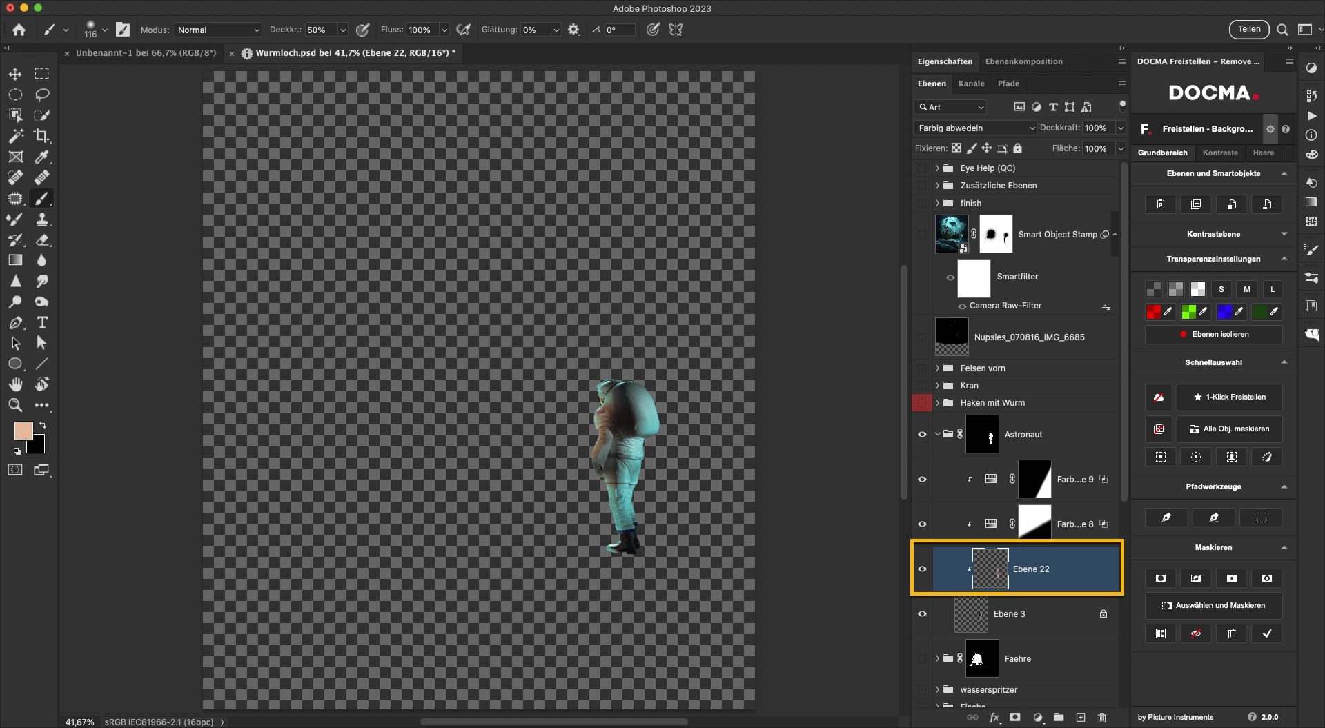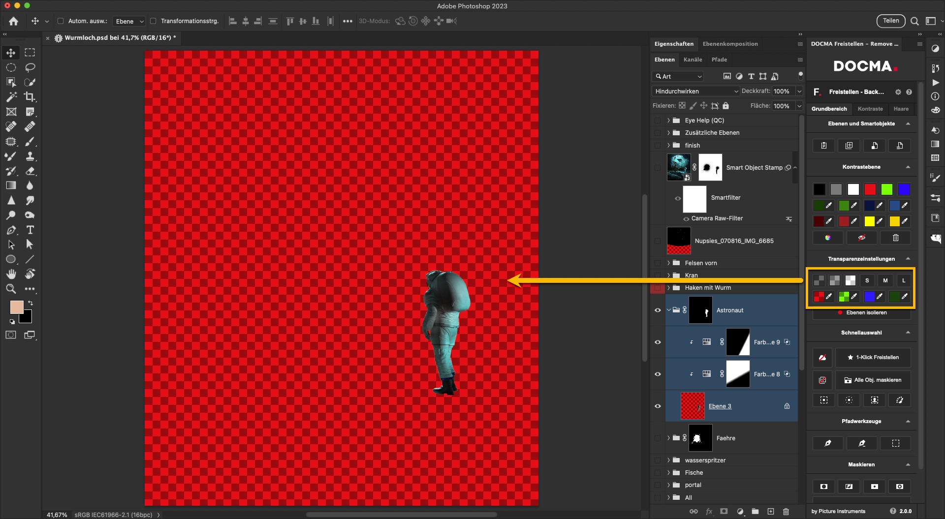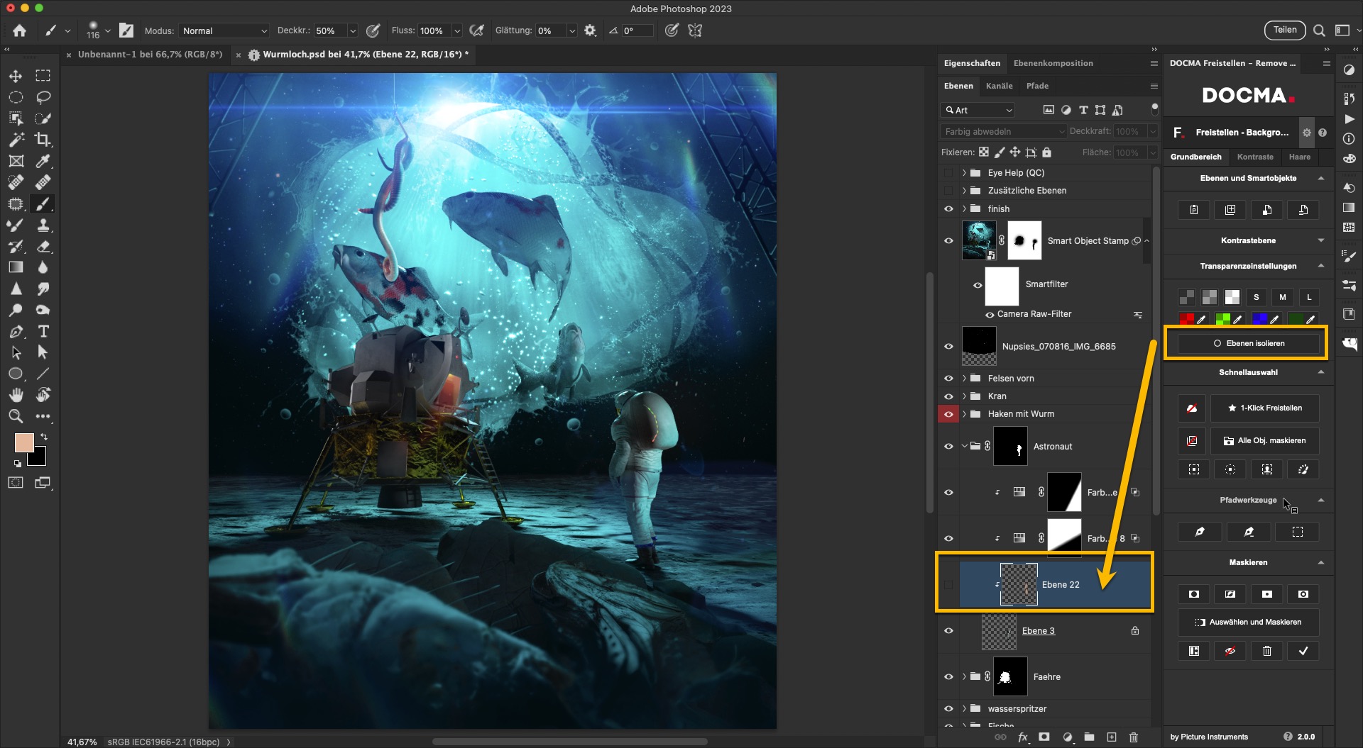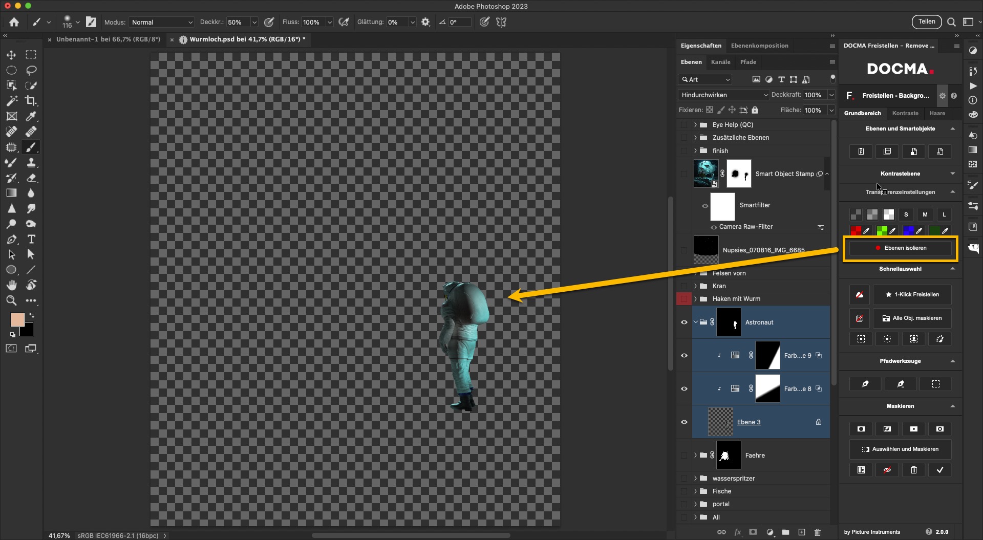 Die Crux mit „Alle anderen Ebenen ausblenden“ und die Lösung mit dem DOCMA-Freistellen-Panel