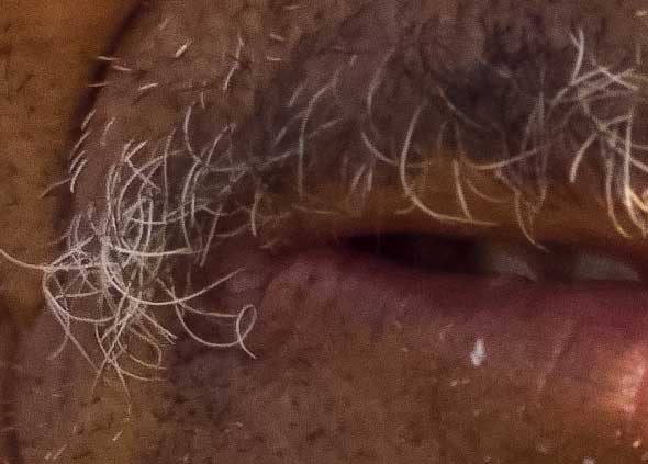 Die Herstellerfirma Light hat inzwischen auch JPEGs mit voller Auflösung bereitgestellt, anhand derer man die Bildqualität beurteilen kann. Wie viele Details ein Bild enthält, illustriert die Gegenüberstellung des vollständigen Bildes mit einem 1:1 Ausschnitt, der den Mundwinkel des kubanischen Cowboys zeigt: