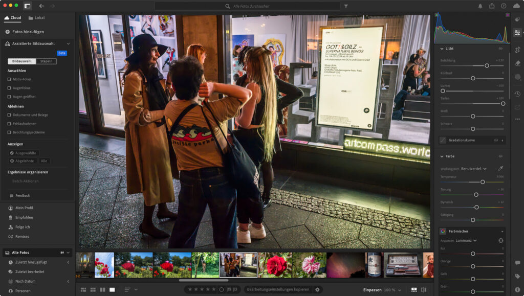 Vermutlich ist es eine Konsequenz des Abomodells, dass sich Adobe an die beste Umsetzung einer guten Idee erst herantasten muss. Früher verging zwischen kostenpflichtigen Lightroom-Upgrades, die neue Features brachten, eine längere Zeit. Das verschaffte den Entwicklern die nötige Muße, herauszufinden, wie sich eine neue Funktion optimal mit dem Rest der Software verzahnen ließ. Nun, da die Kunden monatlich zahlen, verlangen sie auch einen steten Strom inkrementeller Upgrades, und so wird eine Neuentwicklung, kaum funktioniert sie im Prinzip und bringt einen offensichtlichen Nutzen, sogleich ausgerollt. Ihre endgültige Gestalt findet sie aber manchmal erst später, nachdem die Nutzer ihre Unzufriedenheit mit der ersten Version geäußert hatten. So ist es auch mit den diversen KI-Funktionen geschehen, die es in Lightroom mittlerweile gibt.