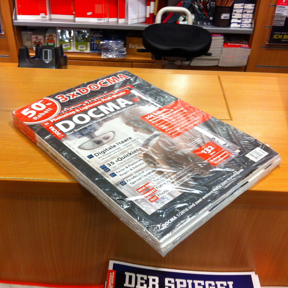 Im Bahnhofsbuchhandel und an einigen gutsortieren Verkaufsstellen gibt es nur für kurze Zeit das DOCMA-3er-Pack zum Kennenlernen. Drei DOCMA-Ausgaben mit 50% Rabatt gegenüber dem ursprünglichen Preis – jetzt nur für 14,90. Leider nicht bei uns im Webshop erhältlich.