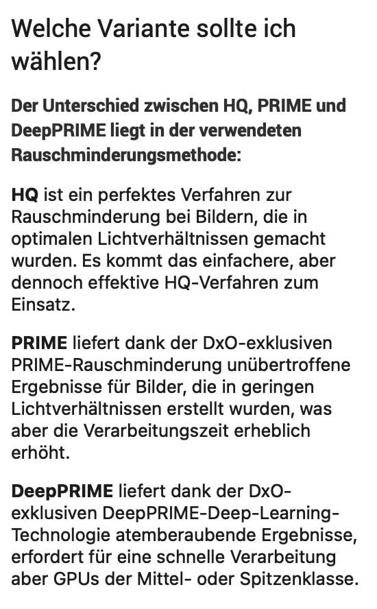 Der Clou: Das so verbesserte DNG können Sie nun im Raw-Konverter Ihrer Wahl benutzen, also etwa in Lightroom Classic oder Capture One. Sie profitieren also sowohl von DxOs erstklassigen Objektivkorrekturen und packen das Rauschen an der Wurzel, können aber weiterhin den eigenen Raw-Konverter nutzen, den Sie aufgrund anderer Vorteile bevorzugen. Falls Sie bereits DxO Photolab benutzen, sind Sie nicht die Zielgruppe von PureRaw – denn Photolab beinhaltet dessen Funktionalität ja bereits.