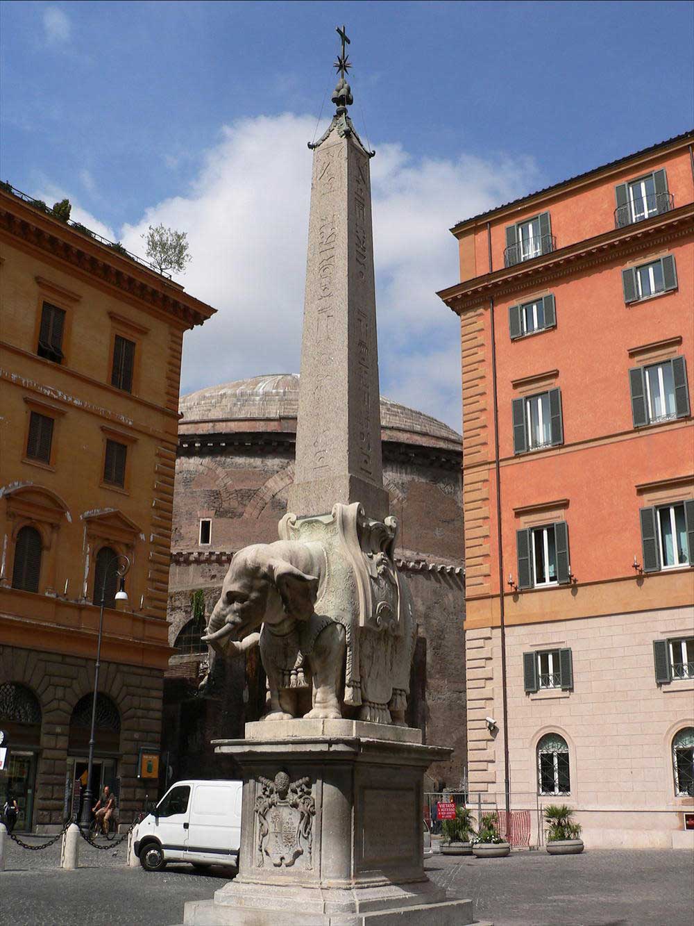Mit diesem auf einem belebten Platz Roms errichteten Monument wurde die im Grunde absurde Idee, einen Elefanten einen Obelisken tragen zu lassen, die zuvor nur den wenigen Lesern eines obskuren Buchs aus dem Jahre 1499 vertraut war, zum kulturellen Allgemeingut.