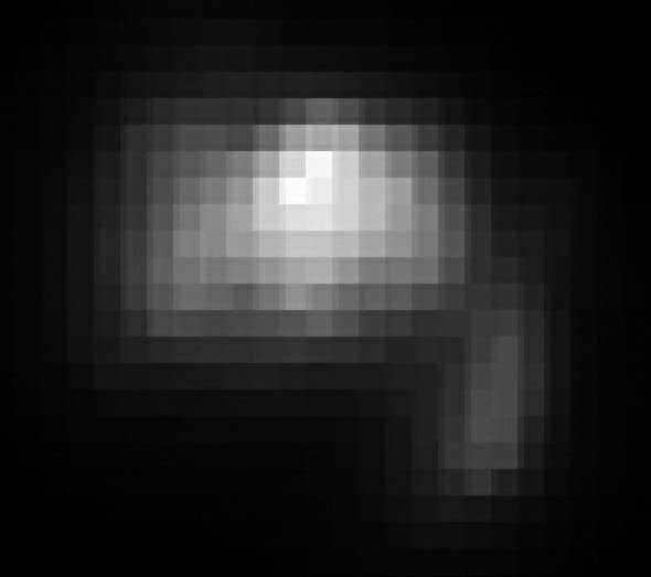 Viele Amateure haben die ISS bereits mit ihren Teleskopen fotografiert, und auf diesen Aufnahmen ist die Struktur der modular aufgebauten Station gut zu erkennen. Manchen sind auch Bilder anfliegender Raumschiffe gelungen. Dabei kamen aber stets mehrzöllige Spiegelteleskope zum Einsatz. Meine Ausrüstung war viel primitiver – ein manuell fokussiertes 500-mm-Tele von Beroflex (die sogenannte „Wundertüte“ mit T2-Anschluss, die ich mir vor vier Jahrzehnten gekauft hatte) an einer Pentax K-5. Als die ISS dann endlich über dem Dach meines Hauses erschien, schaffte ich es aber nicht, dem hellen Lichtpunkt zu folgen, weshalb ich Kamera und Objektiv kurzerhand vom Stativ nahm und mein Glück mit Aufnahmen aus der Hand probierte. Inzwischen näherte sich die Station bereits wieder dem Horizont, aber die Zeit reichte für rund 15 Bilder, mit 1/125 Sekunde bei ISO 200. Einige davon waren verwackelt und zeigten nur eine Wischspur, aber in vier aufeinanderfolgen Aufnahmen war jeweils dasselbe Muster zu sehen. Zugegeben, es war nur ein unscharfer Pixelhaufen – konnte das wirklich ein Bild der ISS sein? Nach dem Stacking von drei dieser Aufnahmen erhielt ich diese nicht viel bessere Version: