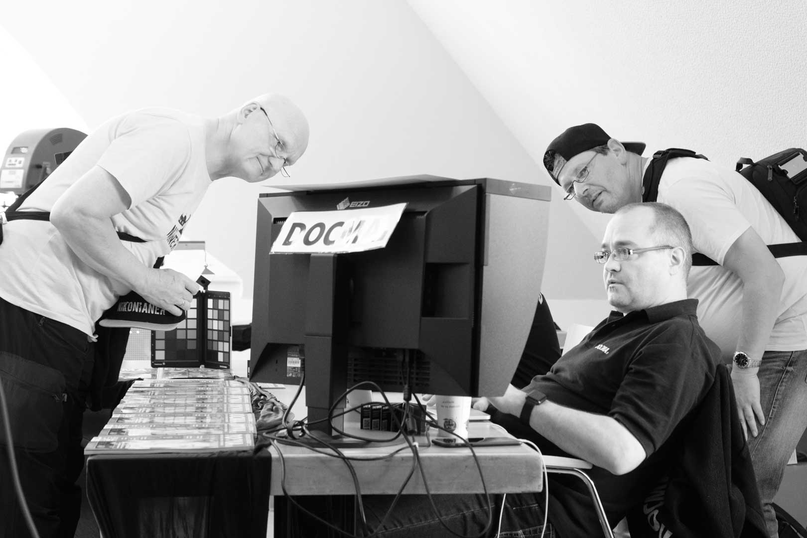 Rolf Pessel hat das Team von DOCMA mit einer Foto-Reportage zwei Tage bei seiner Arbeit in Zingst begleitet. Schwerpunkt dabei war die Öffentlichkeitsarbeit für Social Media, weniger die Arbeit an Artikeln für die Zeitschrift. Glücklicherweise – denn das war für mich wesentlich interessanter, als nur Menschen am Computer beim Ausprobieren von Softwaretricks oder beim Brüten über Texte zu fotografieren.