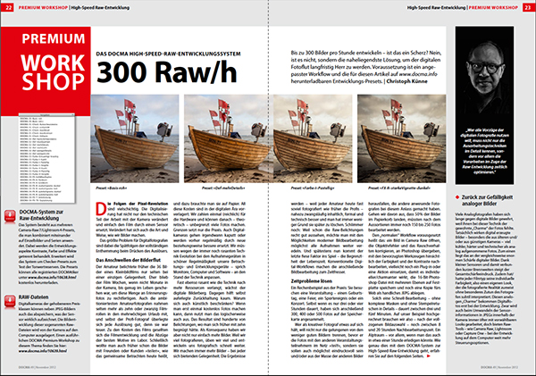 …des Themas haben wir in DOCMA 49 gebracht. Dort wird das System im Detail erklärt. Wenn sie die Ausgabe nicht haben, könen Sie sie entweder bei uns im Webshop in Papierform erweben oder nur den Premium-Workshop zum dem Thema als PDF herunterladen. Der Artikel umfasst 16 Seiten und kostet 2,99 Euro. Seither gibt es in jeder neuen DOCMA-Ausgabe zusätzliche Presets zu wechselnden Themen.
