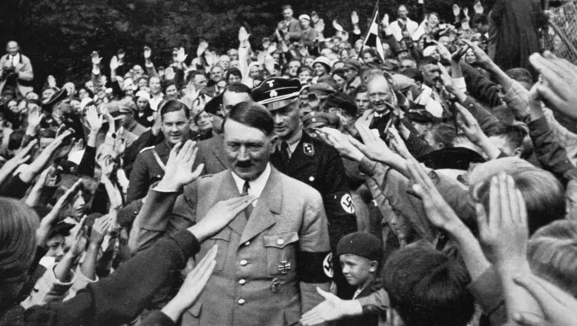 Es genügte, jeweils eines der Bilder auszuschneiden, in einer eigenen Datei zu sichern, diese im Browser zu öffnen und Googles Bildersuche darauf anzusetzen. Saddam Hussein hielt tatsächlich einen Koran hoch, während er sich im Prozess gegen ihn verteidigte. Auch der türkische Präsident Recep Tayyip Erdoğan berief sich auf den Koran, als er 2015 in der Stadt Batman Wahlkampf machte. Adolf Hitler hingegen mag zwar gelegentlich ein Buch gehalten haben, aber nicht in der Situation, die das Bild zeigt. Wem nicht schon die grobschlächtige Montage verrät, dass es sich um eine Fälschung handelt, dem beweist es der Vergleich mit dem Original: