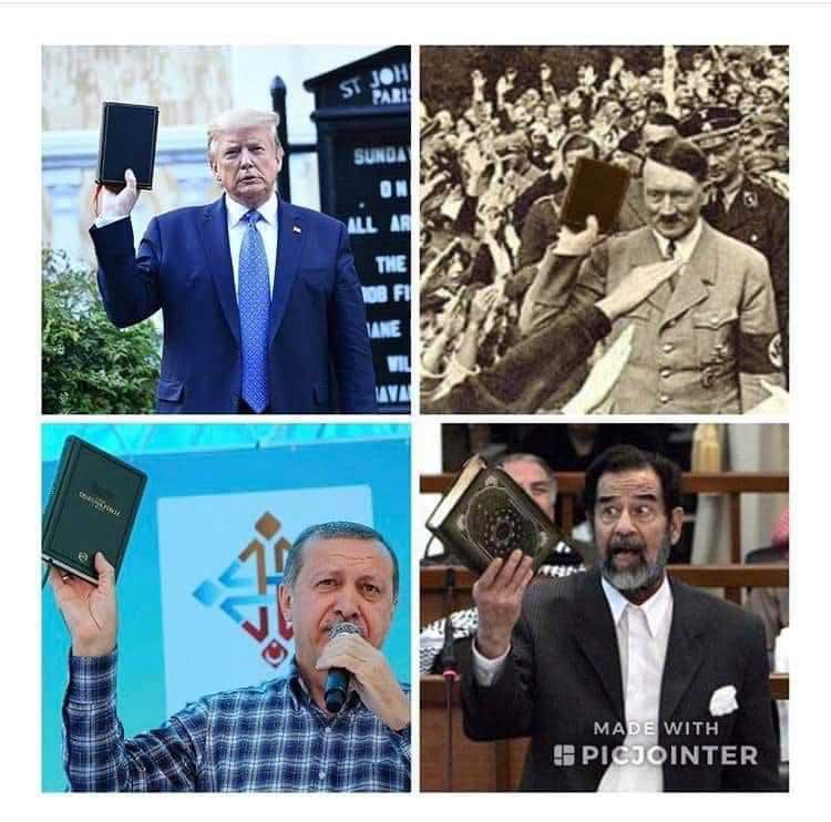 Es ist auch durchweg nicht so schwierig, die Provenienz von Bildern zu überprüfen, die man im Web findet. Nach Donald Trumps bizarrem Auftritt mit einer geliehenen Bibel vor einer Kirche nahe des Weißen Hauses machte beispielsweise ein Bild die Runde, das weitere Politiker mit Büchern in der Hand zeigte: