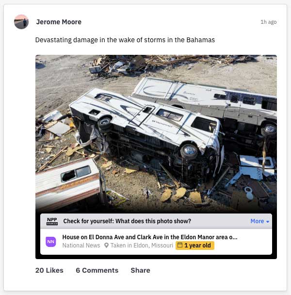 Die Probleme mit Fotos, die einen Bericht über irgendein Ereignis illustrieren sollen, sind deren bisweilen zweifelhafte Authentizität sowie die ebenso zweifelhafte Provenienz. Ein Foto, das beispielsweise die Auswirkungen einer aktuellen Naturkatastrophe zeigen soll, könnte eine Katastrophe an einem anderen Ort und/oder einer anderen Zeit zeigen. Vielleicht wurde das Bild auch verändert und seine Aussage damit manipuliert.