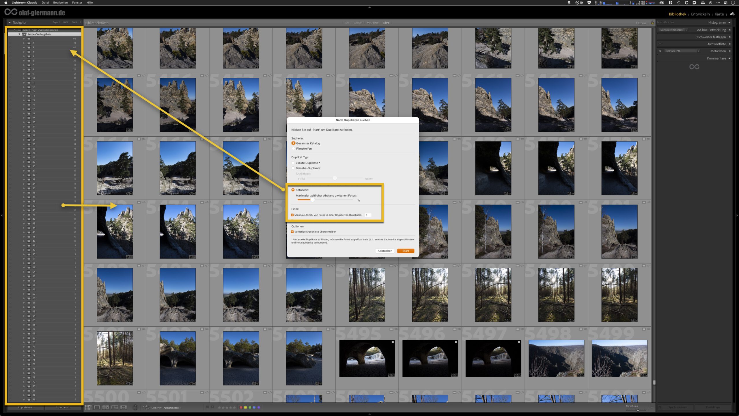 Serienfotos finden per Duplikate-Suche in Excire Search