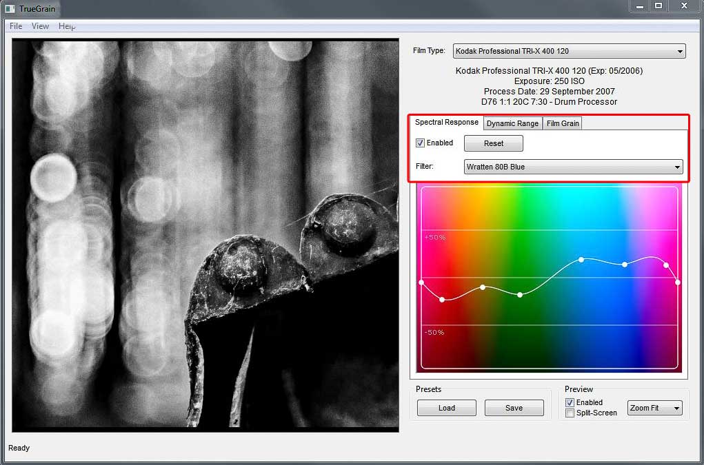 Die Software mit dem treffenden Namen TrueGrain bietet Schwarzweiß-Negative 16 verschiedener Filmtypen, die als Originalscan über digitale RGB-Aufnahmen gelegt und angepasst werden können. TrueGrain lässt sich auch als externer Editor in Lightroom integrieren und bringt in der kürzlich erschienen Version 2.0 fünf weitere Filmtypen mit.