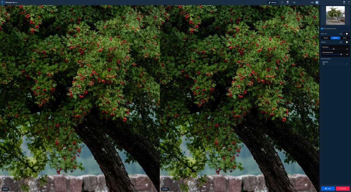 Andererseits finde ich das neue Modell aber ziemlich fair – sowohl für uns Nutzer als auch für Topaz. Denn gerade bei diesen AI-basierten Plug-ins ändert sich ständig etwas. Laufend werden die Algorithmen per Machine Learning trainiert und weiter optimiert. Wo soll man da als Software-Unternehmen die Trennlinie ziehen und sagen „Jetzt bringen wir das Ding mit einer neuen Versionsnummer heraus, das die Nutzer wieder kaufen müssen“.