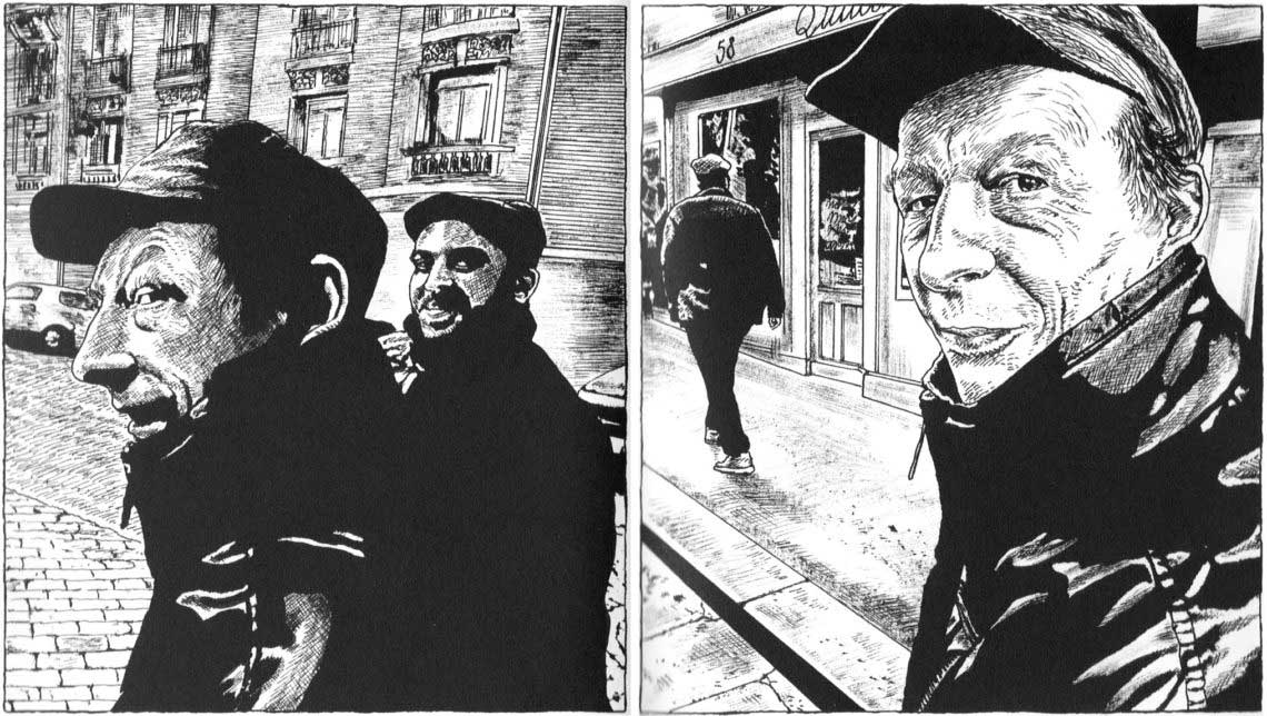 In „Ungewisses Manifest 2“ geht es um Walter Benjamins letzte Jahre in Paris, um André Breton und seine Geliebte/Muse „Nadja“, um den vergessenen Historiker Augustin Thierry, um Edward Hopper und vieles andere einschließlich des Lebens des Autors. Pajak schweift ständig ab, er springt assoziativ von einem Thema zum anderen – man muss das mögen. Zwischen die Textblöcke sind Tuschezeichnungen des Autors gestreut, und um diese geht es mir hier: Schon beim ersten Durchblättern hatte ich den Eindruck, dass sie nach Fotografien entstanden waren, woraus sich sofort ein weiterer Gedanke ergab: Wie kann es sein, dass man einer Tuschezeichnung ansieht, ob ihr Vorbild die Realität selbst oder ein Foto war?