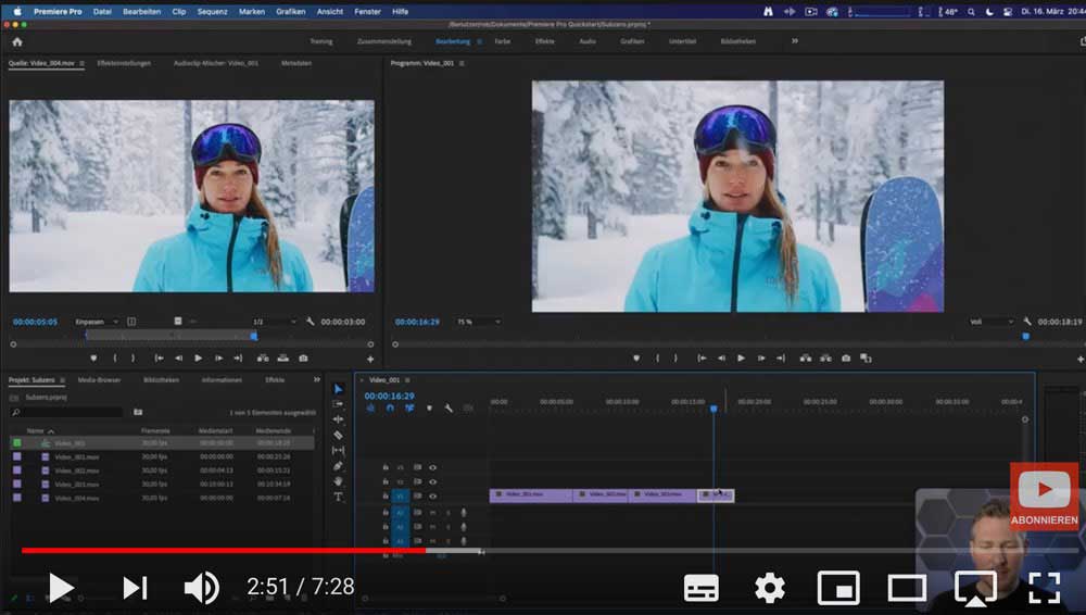 Was kann ich aus meinen Filmen machen, die ich mit der Videofunktion meiner Fotokamera aufgezeichnet habe? Robert Hranitzky erklärt in wenigen Minuten die Essentials des Filmschnitts in Premiere Pro. Dabei zeigt er, wie man Filmsequenzen importiert und sich schnell einen Überblick über den Inhalt verschafft, die besten Szenen für den Schnitt vorbereitet, eine schnelle Farbkorrektur vornimmt, Textelemente einbaut, eine Tonspur unterlegt und das Werk anschließend für die spätere Verwendung exportiert.