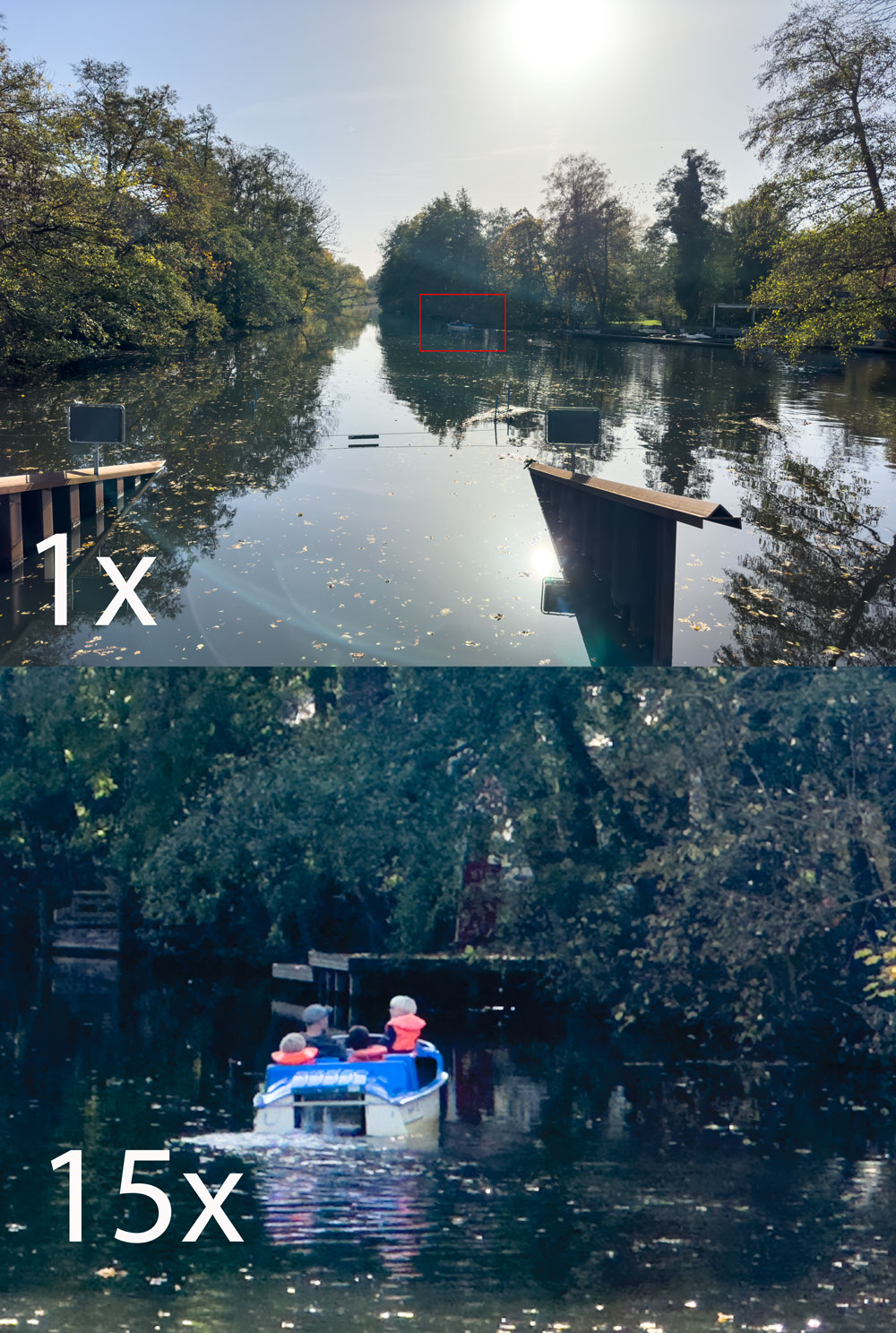 Bei den verbauten Objektiven macht sich vermutlich niemand Illusionen über die Vergütung oder die eingesetzte Glasqualität. Man darf getrost davon ausgehen, dass hier Kunststoff zu Einsatz kommt, es sich also um das handelt, was der Fotografen-Volksmund verächtlich als „Plastiklinsen“ tituliert. Solche Herablassung täuscht allerdings über die Bildergebnisse in Extremsituationen hinweg. Gut zu beobachten etwa bei Gegenlichtaufnahmen, bei denen die Sonne direkt ins Objektiv hinein scheint.