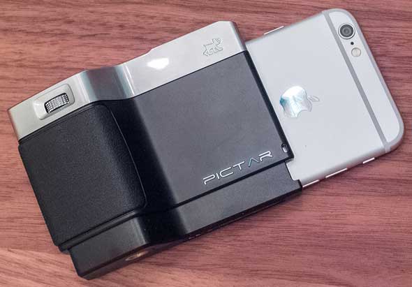 Der Smartphone-Griff Pictar ist bislang nur für Apples iPhone (ab 4s) erhältlich; es gibt zwei Varianten für die normalen und die größeren Plus-Modelle, die 99 USD