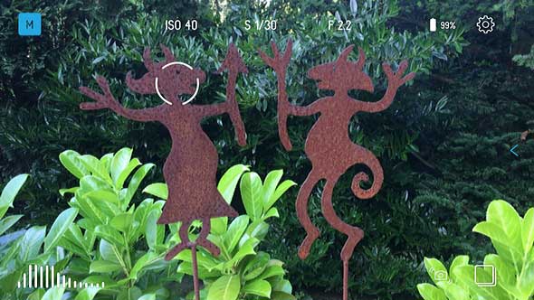 Die Pictar-App ersetzt Apples eigene Kamera-App und ist leistungsfähiger als diese. Zu den optional zuschaltbaren Extras gehört eine Histogrammanzeige und eine elektronische Wasserwaage, dazu gibt es halbautomatische Betriebsarten, in denen Sie beispielsweise die Verschlusszeit (bei meinem iPhone 6 zwischen 1/6000 und 1/2 Sek.) oder den ISO-Wert (zwischen ISO 40 und 2000) manuell wählen können. Das frei positionierbare Messfeld können Sie in zwei Felder für eine getrennte Fokussierung und Belichtungsmessung aufteilen. Diverse Filter können hinzugekauft werden, um den Funktionsumfang der App zu erweitern; vor dem Kauf sehen Sie immerhin eine Vorschau des Effekts.