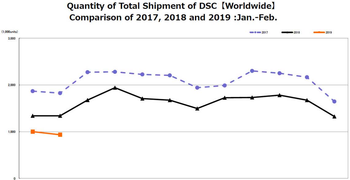 Natürlich sind zwei Monate noch nicht unbedingt aussagekräftig für ein ganzes Jahr; zudem sind Januar und Februar generell eher schwache Monate. Kameras werden vor allem zwischen März und November gekauft, mit einer Delle im Sommer, wenn die Verbraucher der Nordhalbkugel ihr Geld lieber für Urlaubsreisen als für Kameras und Objektive ausgeben. Der Dezember ist, Weihnachten hin oder her, der umsatzschwächste Monat. Viel Hoffnung gibt das jedoch nicht: Von 2017 auf 2018 sind die Verkaufszahlen in jedem Vergleichsmonat zurückgegangen, und nachdem die Zahlen im Januar und Februar wiederum gegenüber 2018 eingebrochen sind, spricht eigentlich alles dafür, dass auch 2019 kein gutes Jahr werden wird. Morgen werden wir (etwas) mehr wissen, denn der Industrieverband CIPA (Camera & Imaging Products Association) hat angekündigt, am Donnerstag die Zahlen für März zu veröffentlichen.