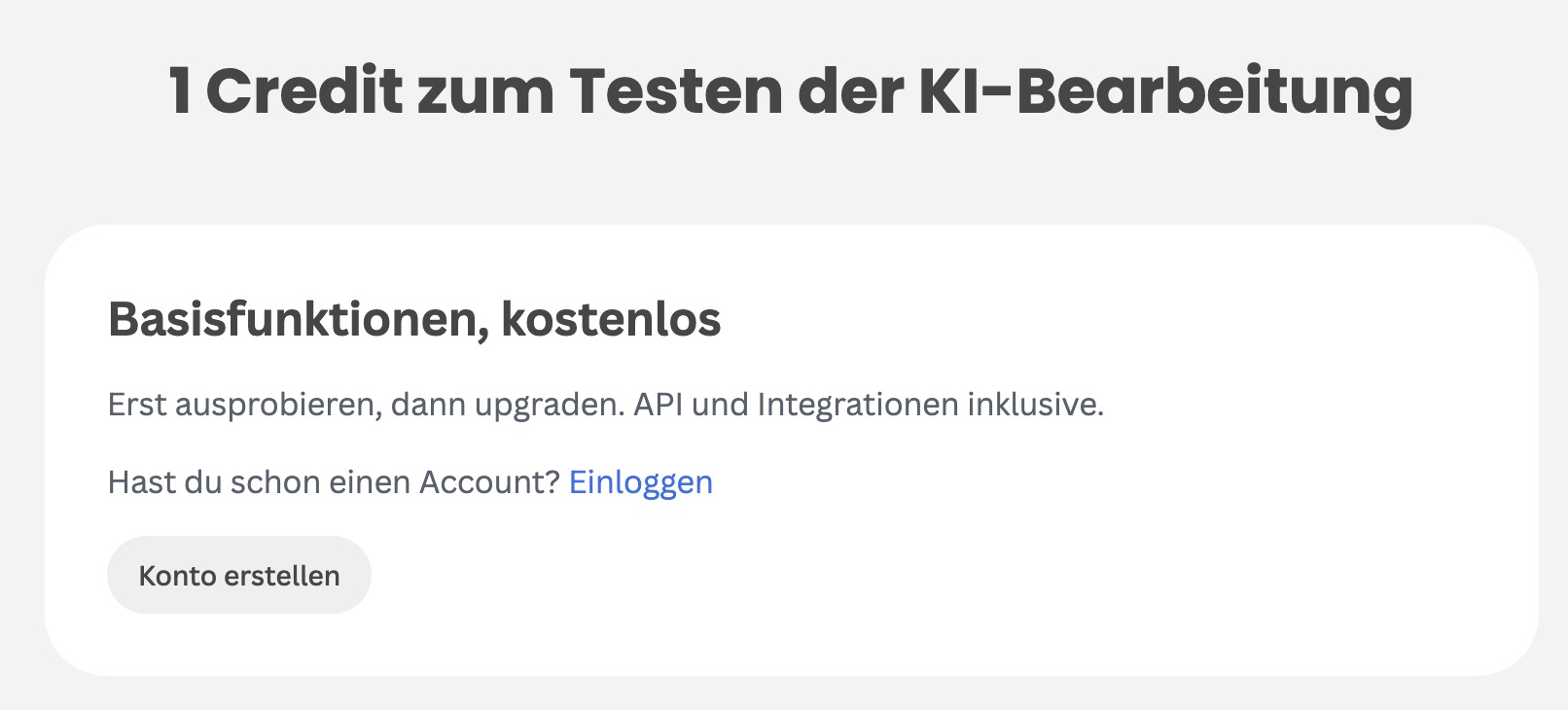 Bei remove.bg gibt es nach Anlegen eines Kontos leider nur einen Credit zum Testen: