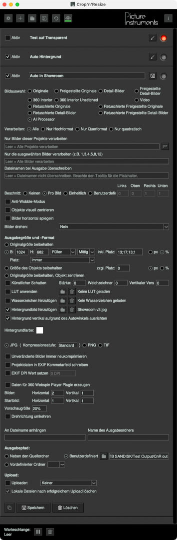 Während Remove.bg die Objekte nur in der Lage ist zu maskieren und ggf. einen neuen Hintergrund einzusetzen, haben Sie bei der Lösung von Picture Instruments weitreichende Kontrollmöglichkeiten über das Ergebnis. Der AI-Processor kann die maskierten Bilder optional an Crop & Resize weitergeben, worin Sie eine Vielzahl von Optionen für jeden Verarbeitungsjob einstellen können:
