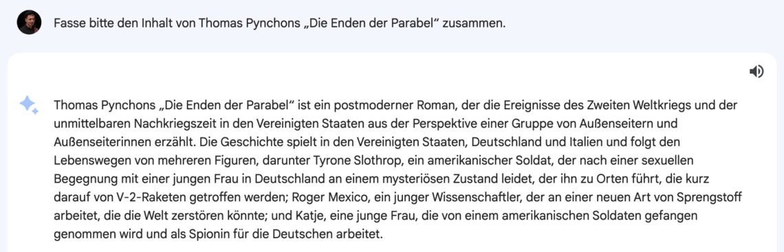 Die Folgen davon können weitreichend sein, und sie beschränken sich nicht darauf, dass sich beispielsweise ein Schüler mit einem KI-generierten Aufsatz blamiert (ich habe Googles Bard mal mit ein paar Fragen aus dem Bereich der Literatur getestet und ihm daneben Aufgaben gestellt, wie sie Informatik-Erstsemester bewältigen müssen, und kann aufgrund der Ergebnisse nur dringend davon abraten, sich auf die KI zu verlassen).