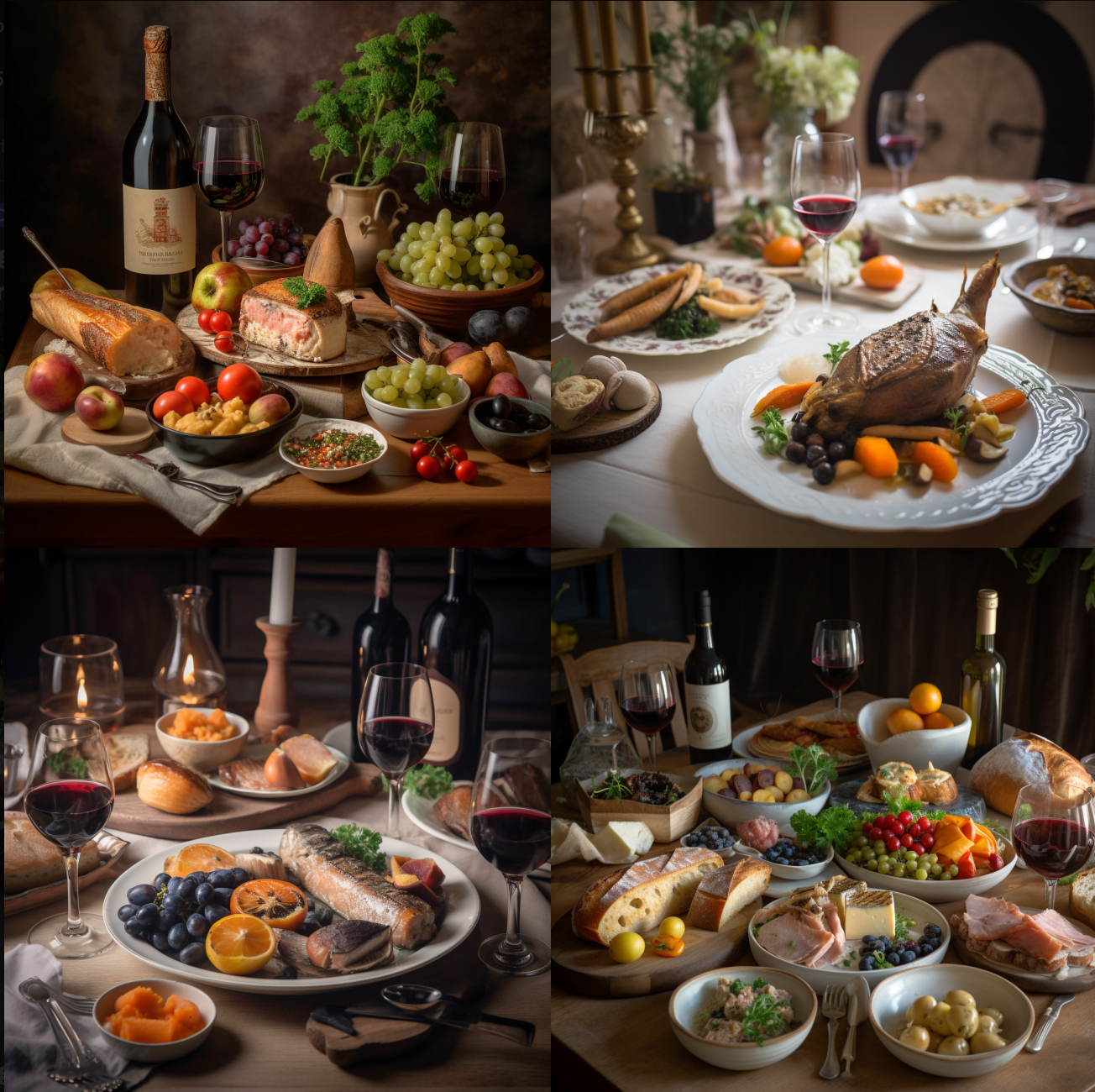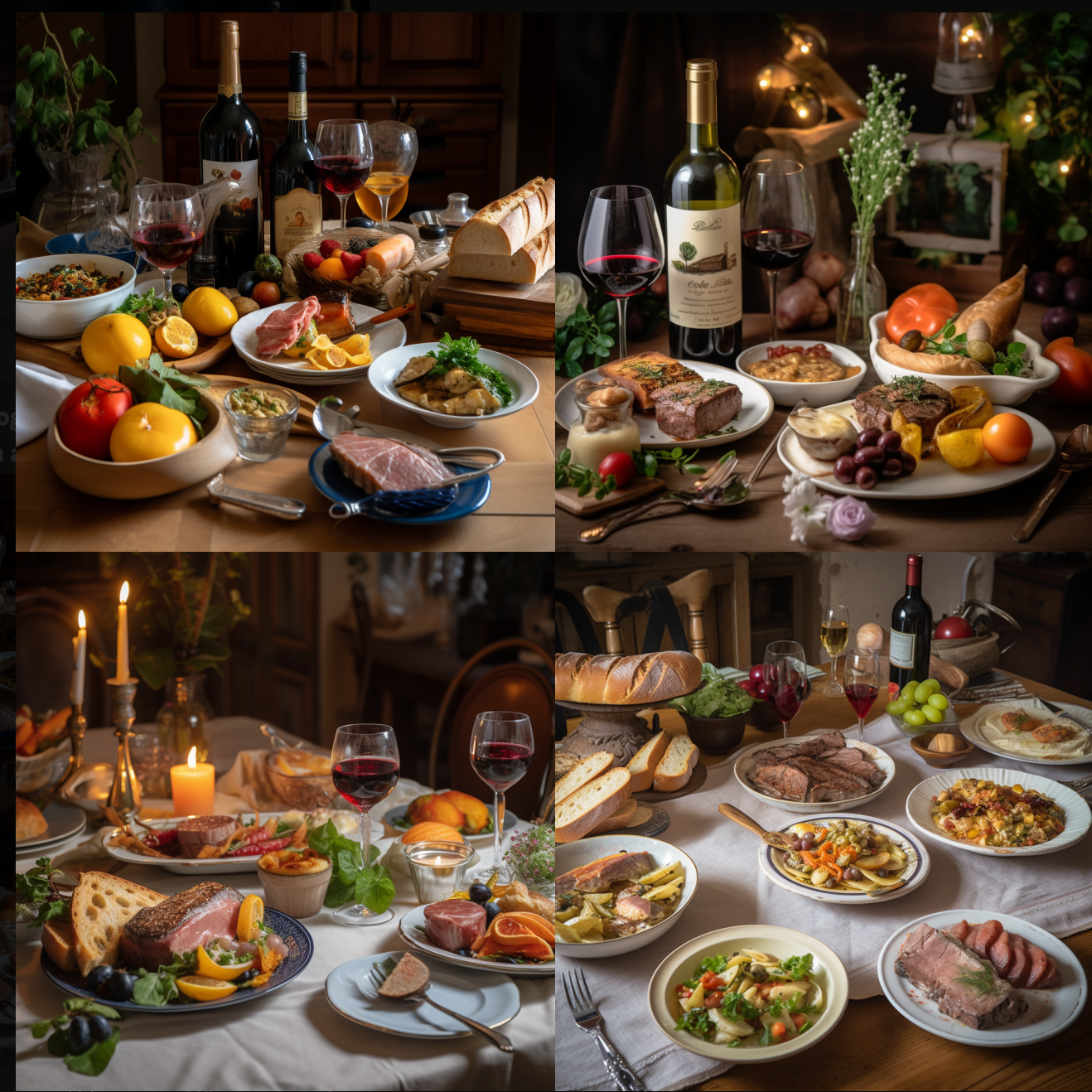 Es muss aber nicht immer nur ein Gericht sein, die KI kann auch ganze Tische landestypisch eindecken. Wichtig ist ebenfalls die passende Stimmung. Ein gutes Essen ist schließlich mehr als die gekonnte Verarbeitung von Zutaten. Also lassen wir ein wenig mediterrane Stimmung ins Bild.