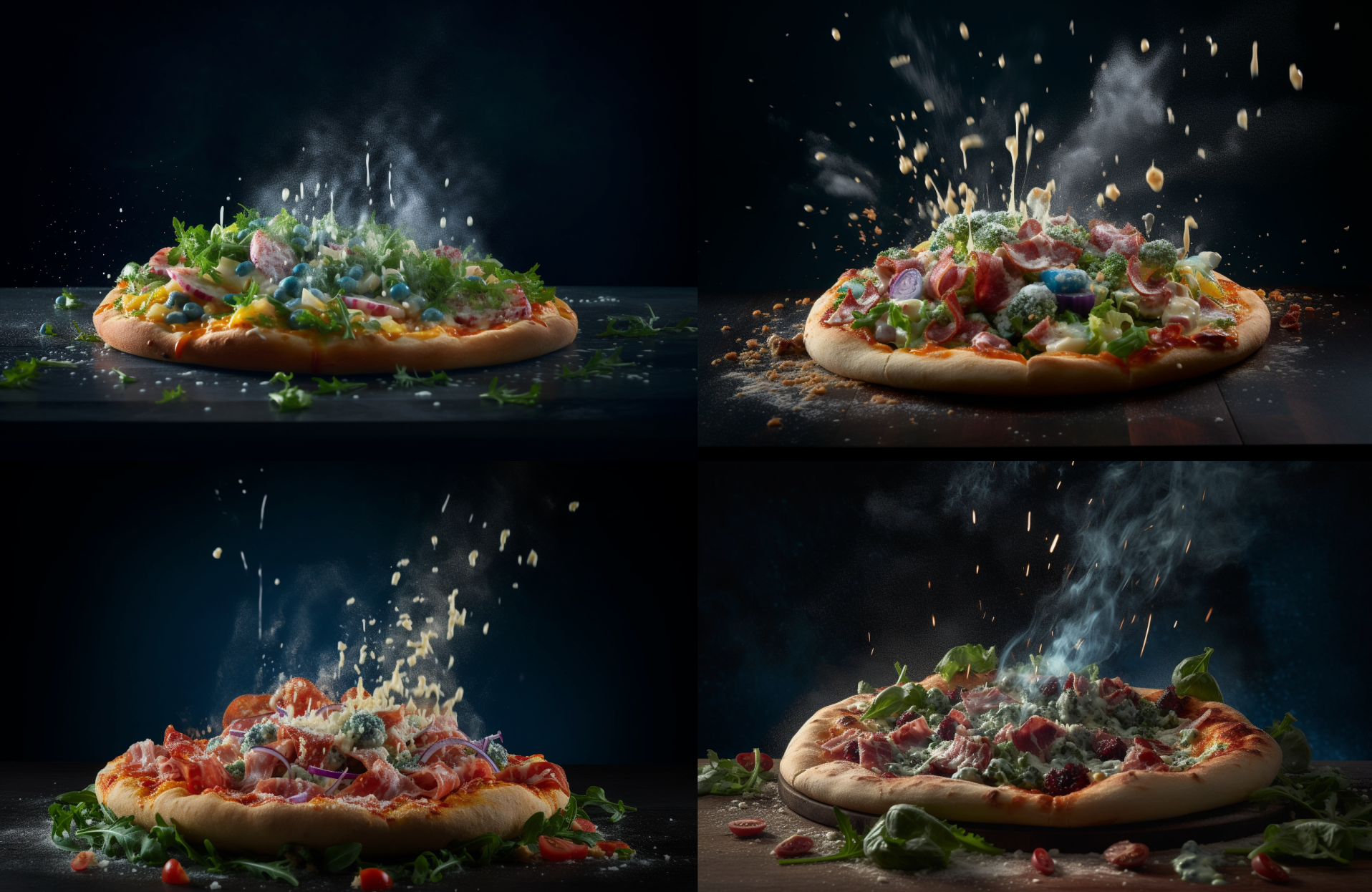 Nachdem wir nun die Grundrezepte für appetitliche Foodbilder kennen, wenden wir uns im letzten Schritt dem Dessert zu: Der dynamischen, fast explosionsartigen Darstellung von Gerichten. Natürlich ist das in aller Regel kein Fall für die gehobene Küche. Eher etwas für die Fastfood-Fraktion: Hamburger, Döner, Pizza. Die Freunde fleisch- und milchfreier Ernährung haben vielleicht mehr Freude an Salaten oder – Dessert-typisches Foodporn – an den Süßspeisen.