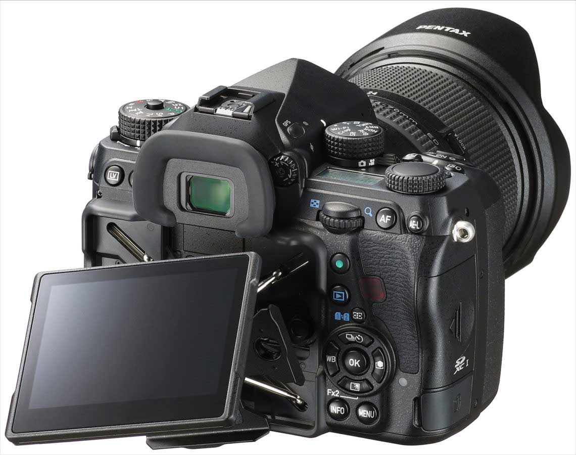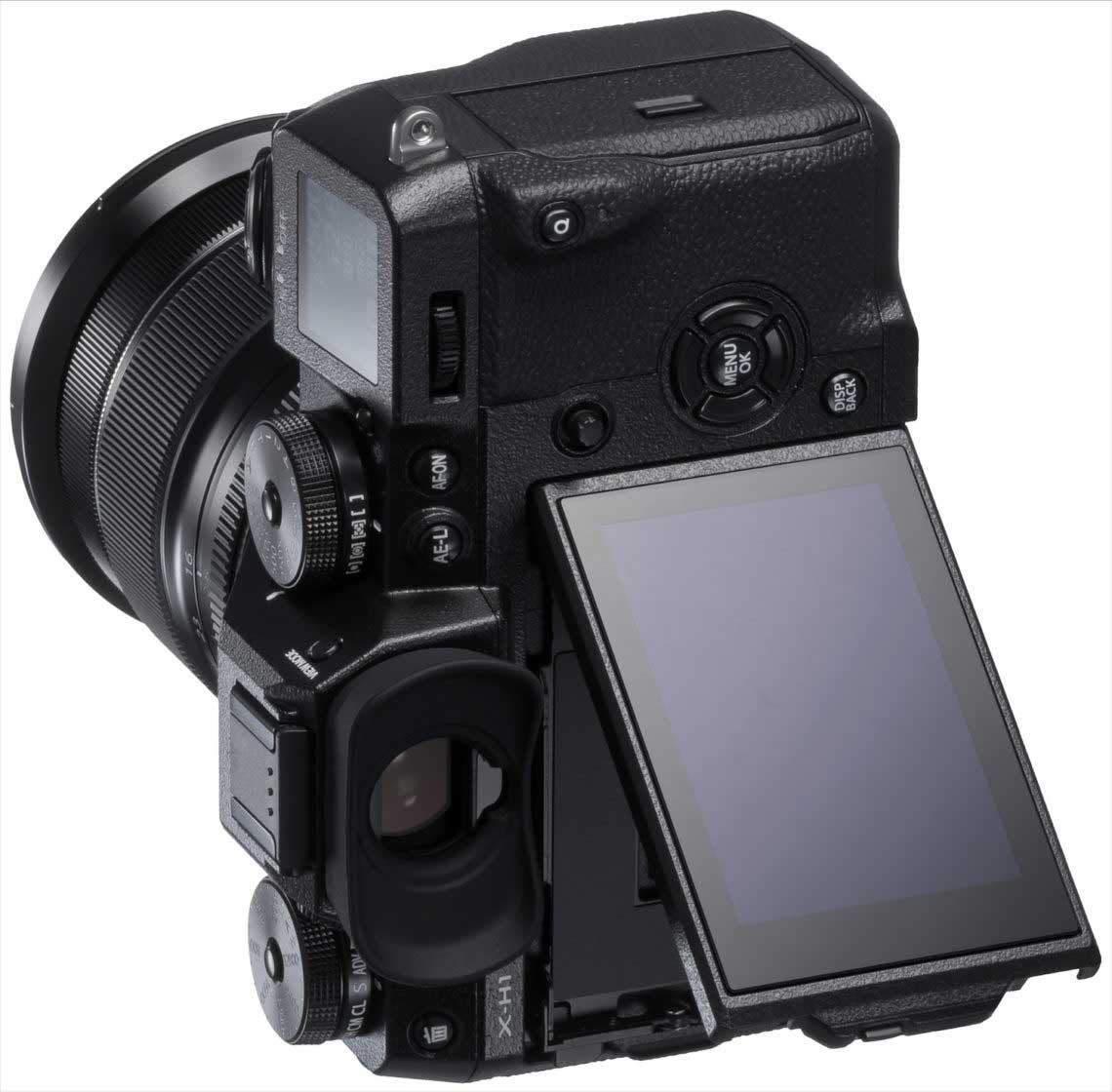 Manche Hersteller haben sich auf ein kippbares Kameradisplay beschränkt: Das Panel ist über ein Scharnier an der Unterkante mit einer Platte verbunden, deren Oberkante wiederum mit einem weiteren Scharnier an der Kamera befestigt ist. So lässt sich das Display für Aufnahmen aus niedriger Höhe nach oben kippen – oder nach unten, um mit der über den Kopf gehaltenen Kamera kontrolliert zu fotografieren. Mit einem dritten Scharnier kann man es auch bei Aufnahmen im Hochformat – je nach Konstruktion – nach oben oder unten kippen. Das Display bleibt bei all dem (annähernd) in der optischen Achse. Diese Lösung hatte Fuji beispielsweise bei der X-H1 und der X-T3 gewählt. Bei der Pentax K-1 (II) hat Ricoh die Grundplatte des Displays statt mit einem Scharnier mit vier beweglichen Beinchen mit der Kamera verbunden – damit kann man es für Hochformataufnahmen nach oben und nach unten kippen, wenngleich der Winkel stärker beschränkt ist.