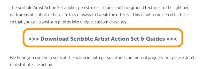 Ich vermute einmal, dass Sie für den Download mit Ihrer Adobe-ID angemeldet sein müssen. Getestet habe ich das jetzt nicht extra. Nach dem Download sollten Sie im Ordner »Scribble Artist Action Set and Guides« jedenfalls die im Screenshot abgebildeten Dateien finden.