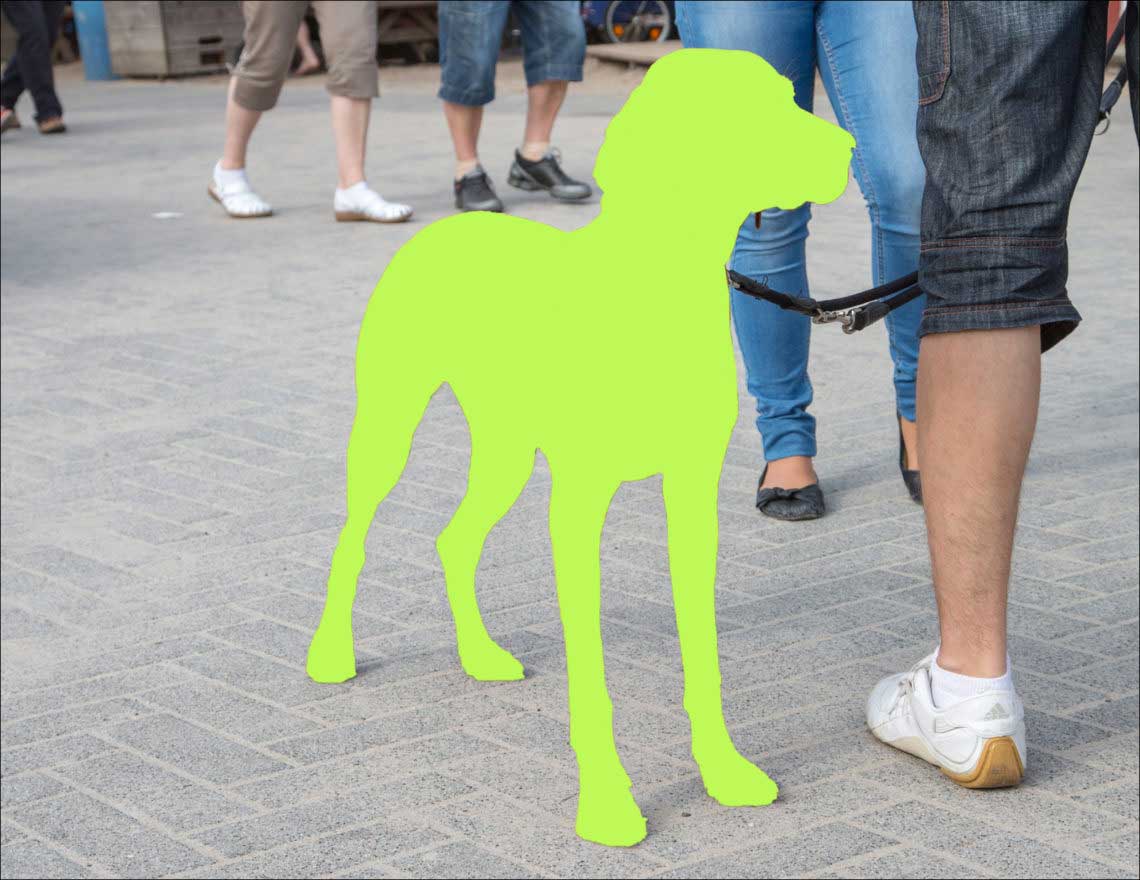 Nachdem Sie alles wie oben beschrieben installiert und Ihre Photoshop-Version auf Englisch umgestellt haben, müssen Sie „nur noch“ vor dem Aufrufen der Aktion eine neue leere Ebene namens mask anlegen (es ist mir absolut unverständlich, warum das kein Teil der Aktion ist!) und das als Zeichnung zu stilisierende Objekt mit irgendeiner Farbe „ausmalen“ (ich nutze lieber das »Schnellauswahl-Werkzeug« oder »Auswahl > Motiv« und fülle dann die Auswahl mit irgendeiner Farbe).