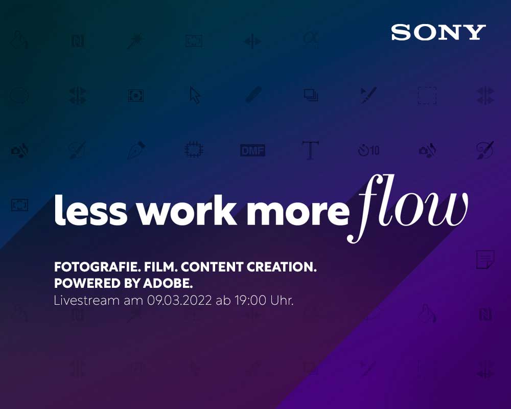„Less work more flow“ lautet das Motto, unter dem das Live Streaming-Event von Sony am Mittwoch, den 9. März 2022 ab 19 Uhr steht. Wie holst Du das Maximale aus deiner Sony Alpha Kamera? Welche Tipps und Tricks erleichtern Dir während des Fotografierens, Filmens und in der Postproduktion die Arbeit, damit Du dich voll und ganz auf das Motiv und die Kreation konzentrieren kannst und Dich weniger mit der Technik beschäftigen musst?
