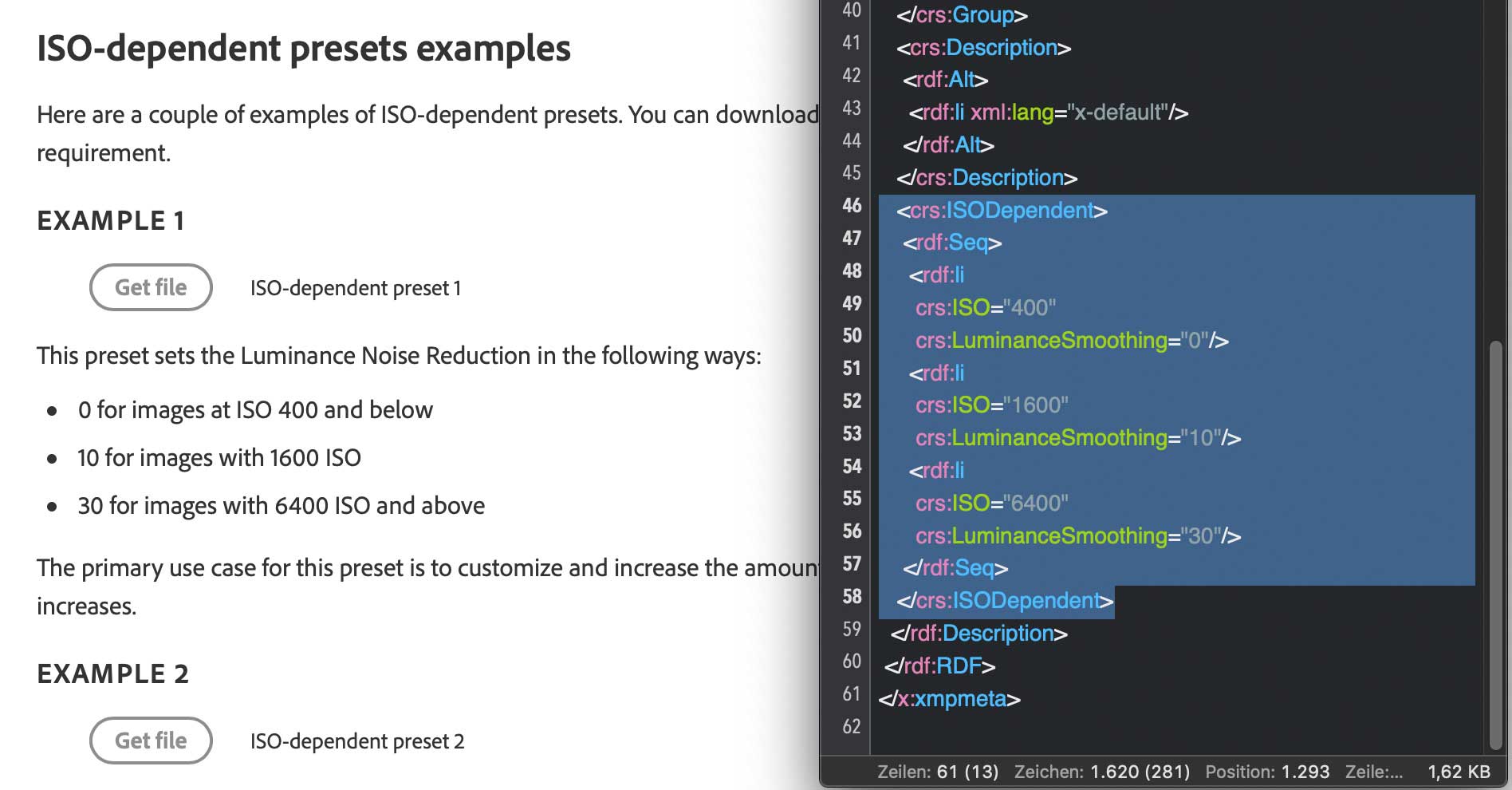 Sichert auf jeden Fall Eure so erzeugten XMP-Vorgaben, denn ein unabsichtlicher Klick auf die falsche Standard-Option kann die mühsam zusammengestellten, ISO-abhängige Einstellungen und -Vorgaben direkt überschreiben. Also Vorsicht!