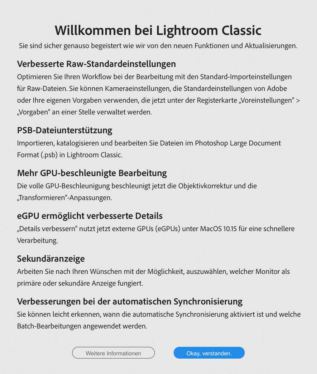 Schnellüberblick: Im am Dienstag veröffentlichten Update für Lightroom Classic mit der Versionsnummer 9.2 gibt es eine Reihe nützlicher Verbesserungen, aber auch einen kleinen Dämpfer für einige Lightroom-Anwender. Und Photoshop wird nächste Woche 30. Da veranstaltet Adobe Deutschland einige interessante Livestreams von Dienstag bis Donnerstag.