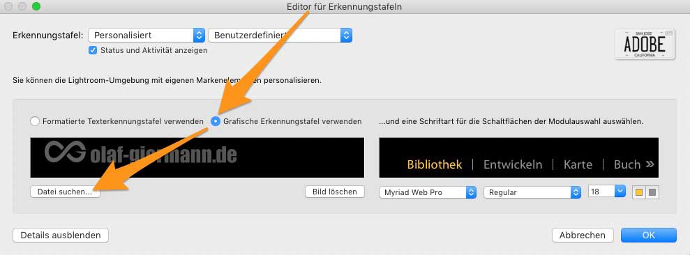 Lightroom-Erkennungstafel: Individualisieren