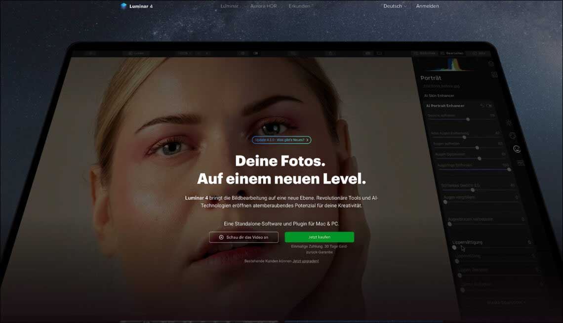 Luminar 4 wird darüber hinaus noch viele Jahre lang weiterlaufen (solange dein Computer die Systemanforderungen von Luminar 4 erfüllt).