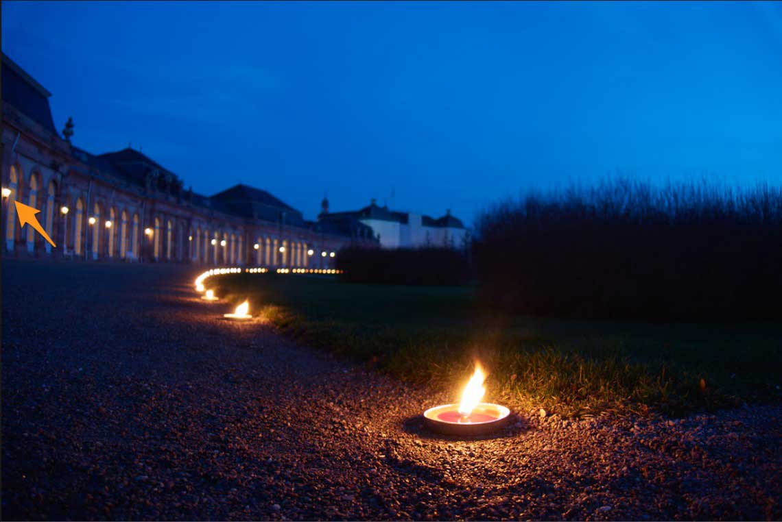 Capture One bietet jetzt sogar zwei Optionen! Die erste: Das Hersteller-Profil eingeschaltet lassen, aber mit dem „Zuschneiden“-Werkzeug die durch die Korrektur aus dem Bild gedrängten Bereiche (im Screenshot abgedunkelt dargestellt!) wieder sichtbar zu machen, wodurch sich sich die Bildproportionen, aber nicht die Verzerrungen im Bild ändern. Achtet einmal darauf: Links im Bild kommt ein komplettes weiteres Fenster des Schwetzinger Schlosses und eine weitere Laterne hinzu!