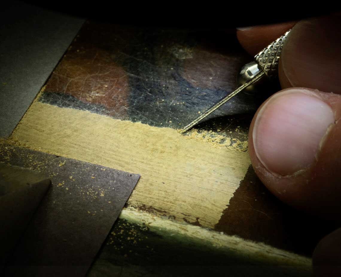 So, wie es nun in der Ausstellung zu sehen ist, hat es die Öffentlichkeit allerdings noch nie gesehen: Im Rahmen einer Restaurierung wurde nicht nur die dunkle Firnis abgetragen und kleine Schäden behoben, sondern auch eine großflächige Übermalung entfernt, was den Charakter des Gemäldes erheblich verändert hat.