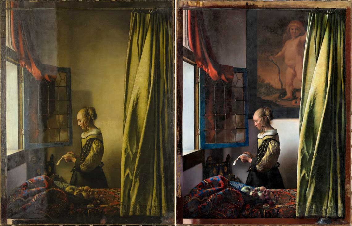 Dass sich unter der scheinbar kahlen Wand hinter der Briefleserin das Bild eines Cupido verbarg, war aufgrund einer Röntgenaufnahme schon seit rund 40 Jahren bekannt, nur war man lange davon ausgegangen, dass sich Vermeer selbst für die veränderte Bildkomposition entschieden hätte. Kürzlich zeigten dann allerdings nähere Untersuchungen, dass die Übermalung jüngeren Datums, wenngleich beim Erwerb des Gemäldes 1742 bereits vorhanden war; der Intention des Künstlers entsprach sie jedenfalls nicht. Caesar van Everdingens Cupido war im Besitz von Vermeers Familie und taucht auch in anderen seiner Gemälde wie der Stehenden Virginalspielerin und der Unterbrochenen Musikstunde als Bild im Bild auf.